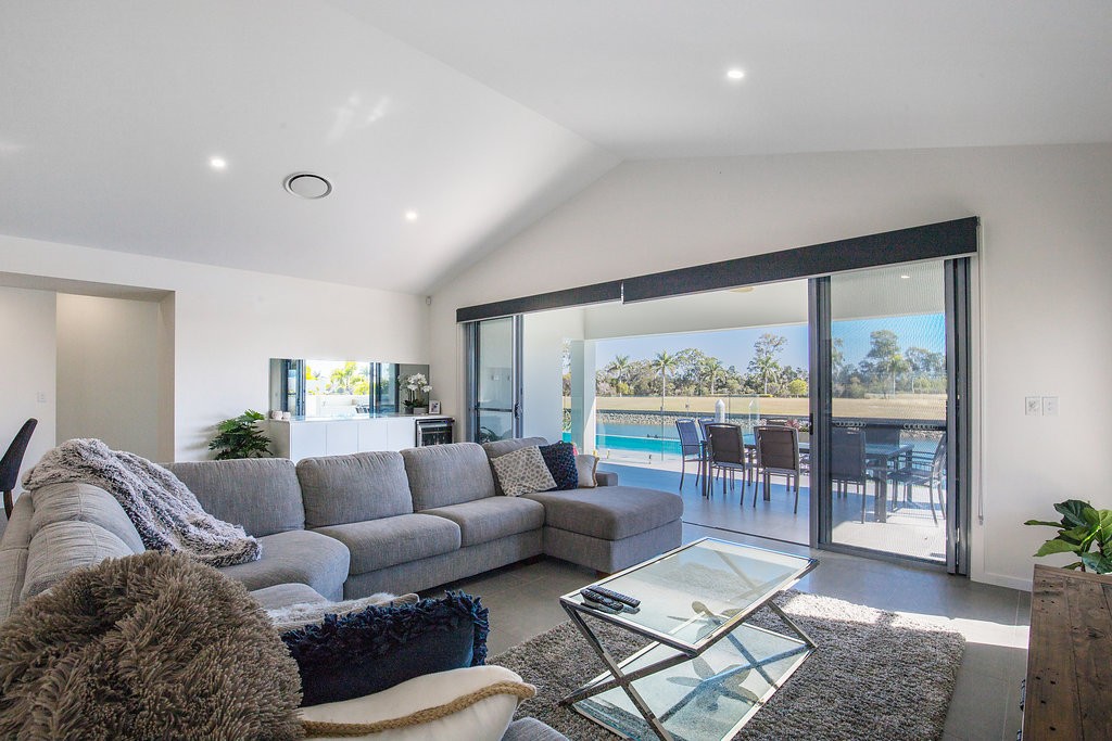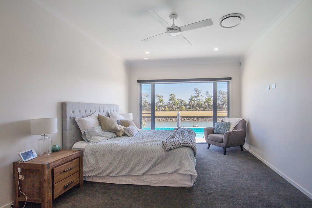 The main bedroom is at the back of the home with a wall of glass separating it from the pool and canal while providing exceptional views. The main bedroom also has its own private bathroom and huge walk in robe. The other three over sized bedrooms (all with fans, built ins, and one with a massive walk in robe) are positioned towards the front of the house with a separate living area and study for kids or guests.