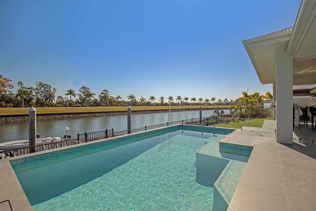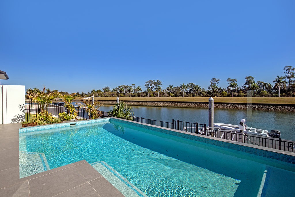 Park your boat out the back with your very own pontoon (plumbed with water and power). Take a 40 minute sunset cruise to enjoy dinner at Sanctuary Cove, or perhaps you would like to indulge in a buffet breakfast 20 minutes away at Tipplers,South Stradbroke Island. If fishing is your thing, in 30 minutes you will be crossing the bar at Jumpinpin. The main entry to the 900 lot housing development at Calypso Bay is The "Grand Canal", which is 75 metres wide - with other canals having a width of 50 to 60 metres and an average depth of 2.5 metres at low tide.
