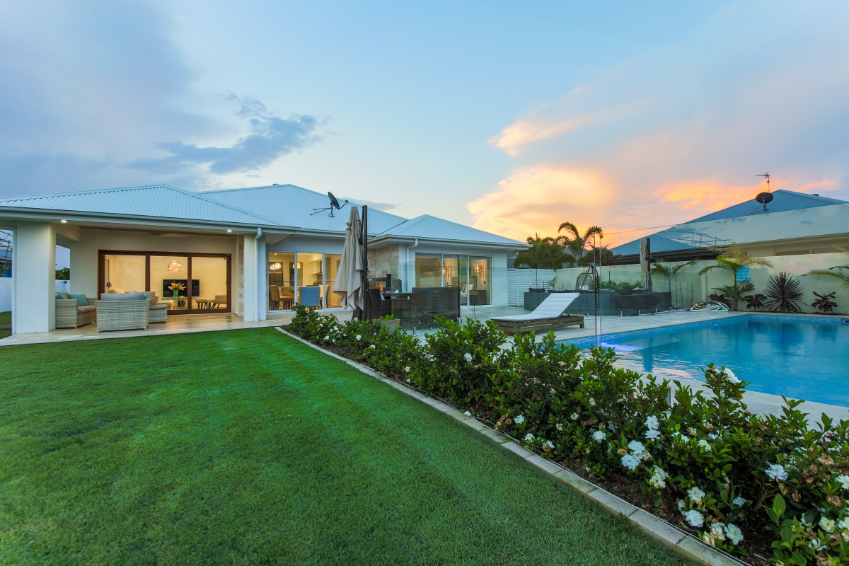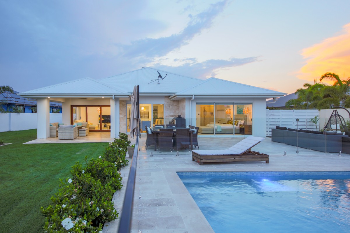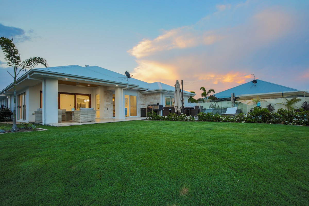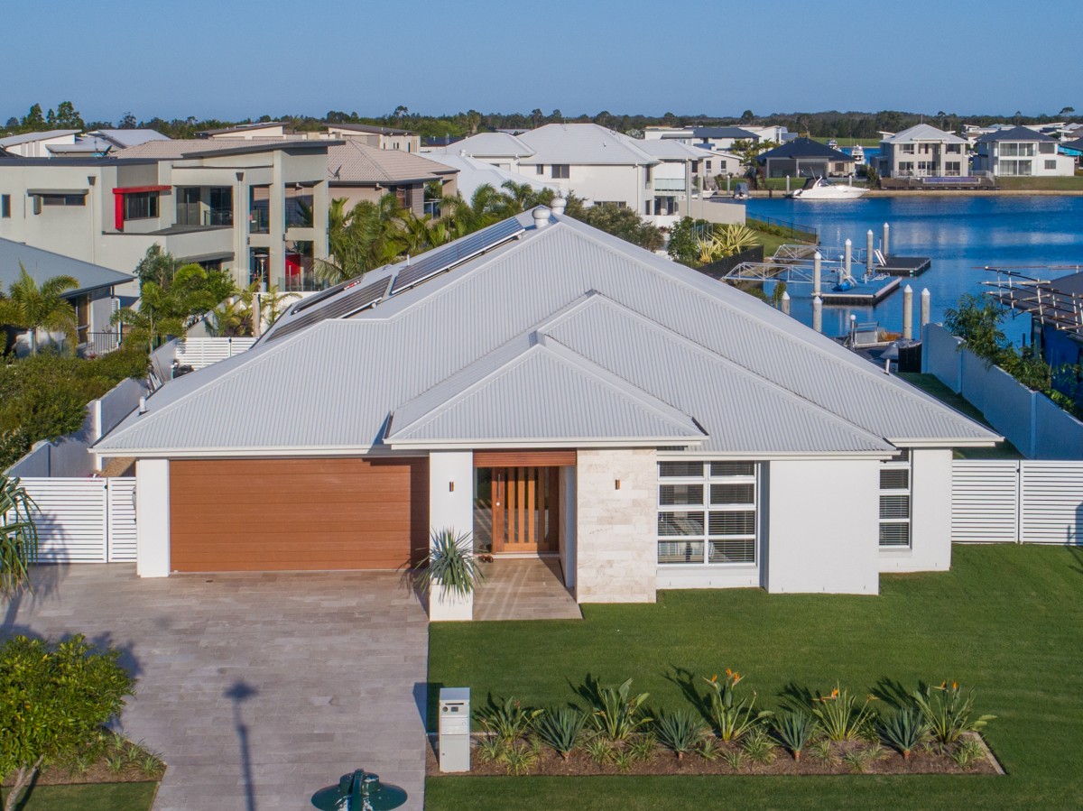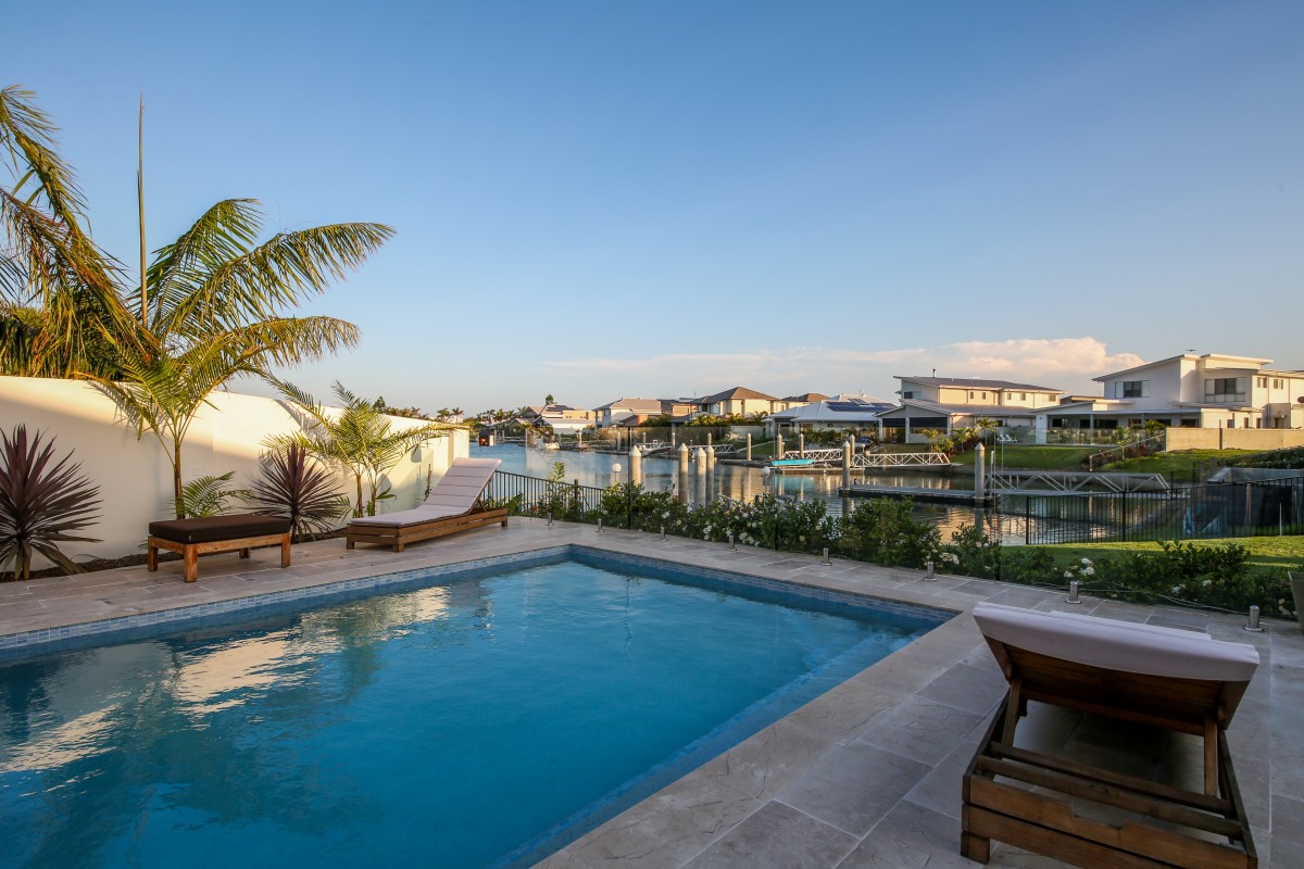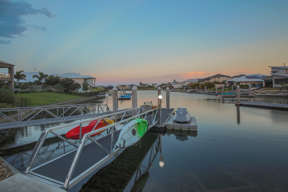 This modern single level home overlooks the canal and has its own private pontoon to allow you to enjoy waterfront living at its best with quick access to the Broadwater (without bridges).