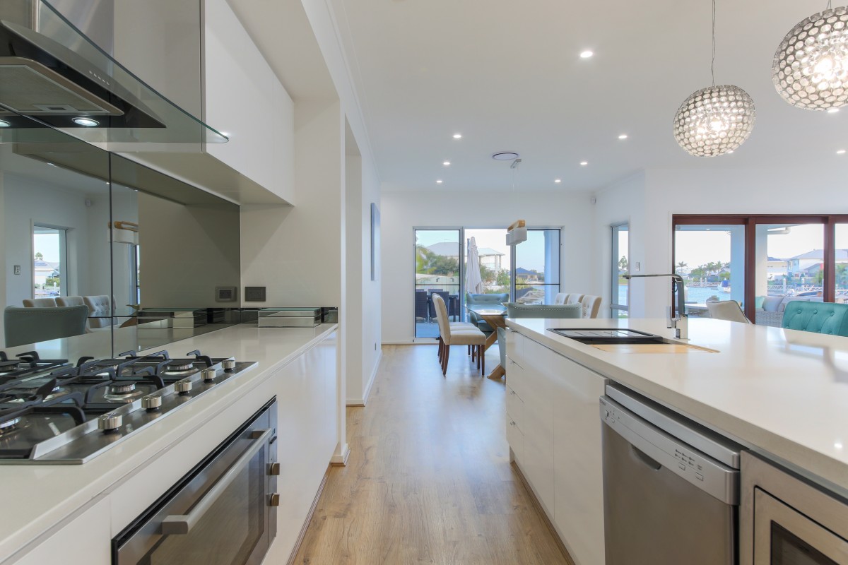 Every detail has been thought of in this stunning four bedroom, three bathroom home that has been finished with the very best of materials. Your water view is from the end of the canal which is facing east, giving you some of the best water views in the estate. This is also one of the biggest blocks in the area at 1072m2, which means plenty of room for the kids or dogs to run around and also has side access. Park your boat out the back with your very own pontoon (plumbed with water and power). Take a 40 minute sunset cruise to enjoy dinner at Sanctuary Cove, or perhaps you would like to indulge in a buffet breakfast 20 minutes away at Tipplers,South Stradbroke Island. If fishing is your thing, in 30 minutes you will be crossing the bar at Jumpinpin. The main entry to the housing development at Calypso Bay is The "Grand Canal", which is 75 metres wide - with other canals having a width of 50 to 60 metres and an average depth of 2.5 metres at an absolute low tide.
