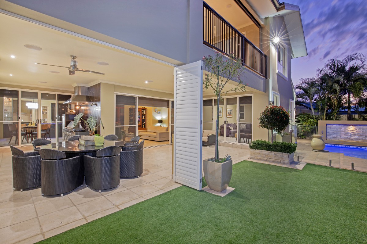 Brilliantly designed to capture light, with a warm and inviting floor plan that flows throughout and makes efficient use of every inch of the home. Formal and informal living areas are positioned perfectly and open up to the beautiful entertaining area that has its own built in outdoor kitchen with fully ducted exhaust, barbeque, sink, fridge and fabulous bi-fold shutters which give you the option to enclose or open the patio area.