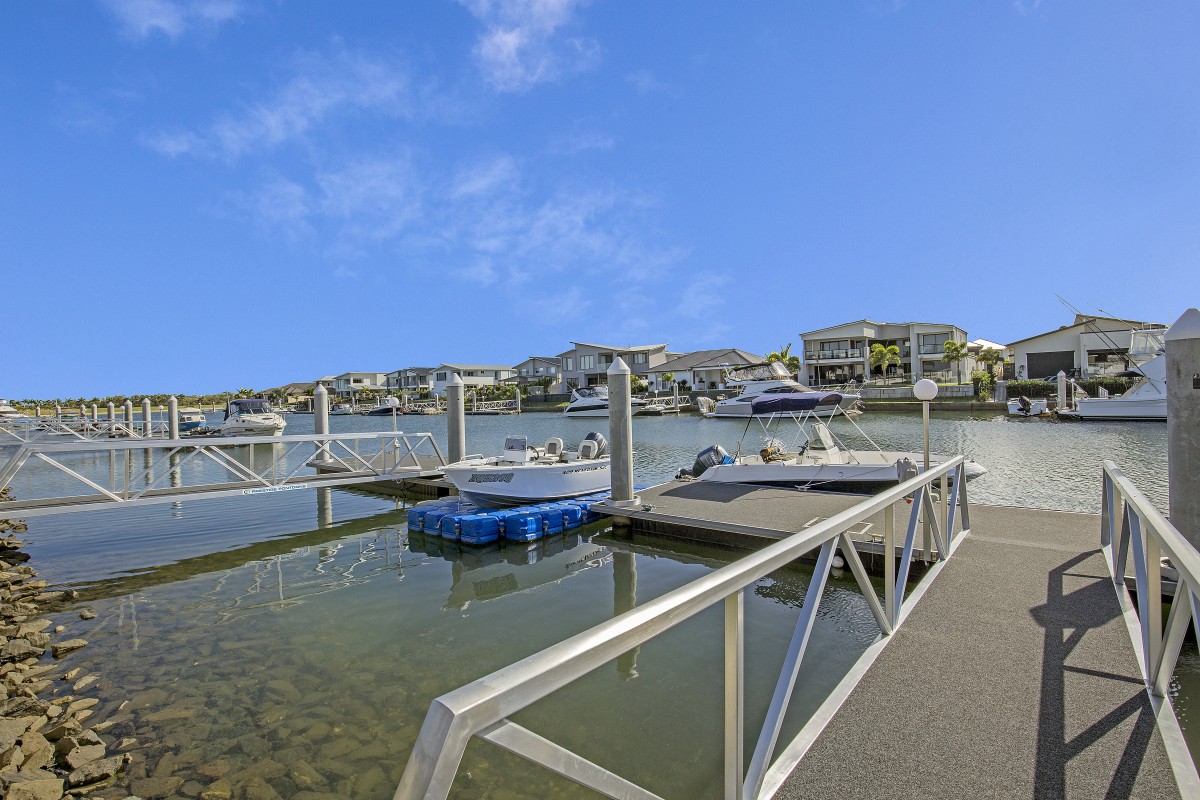 Calypso Bay also has regular security surveillance patrols, a gym (for residence use), beautiful walkways, walking distance to Harrigans Irish pub, a marina with 107 secure berths ranging from 10m - 30m as well - as Jet Ski docks, and full time gardeners that keep the estate looking world class. The waterways main entry to Calypso Bay is The "Grand Canal", which is 75 metres wide - with other canals having a width of 50 to 60 metres and an average depth of 2.5 metres at low tide.