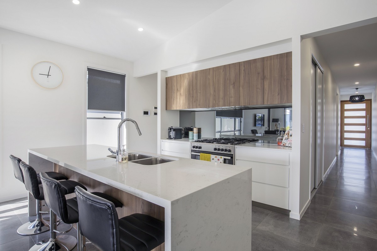 The beautifully designed kitchen is positioned perfectly as the hub of the home with a large island bench, soft close drawers, the convenience of a butlers pantry and of course furnished with high quality appliances including a large 900mm oven with gas cooktop.