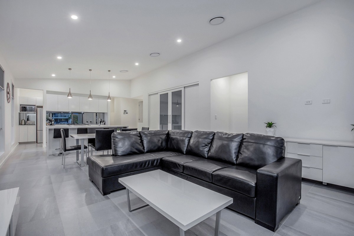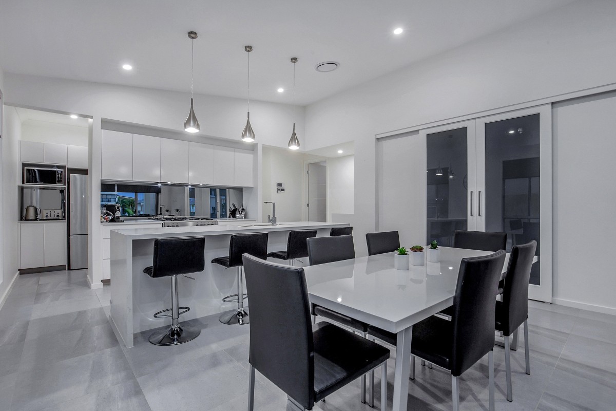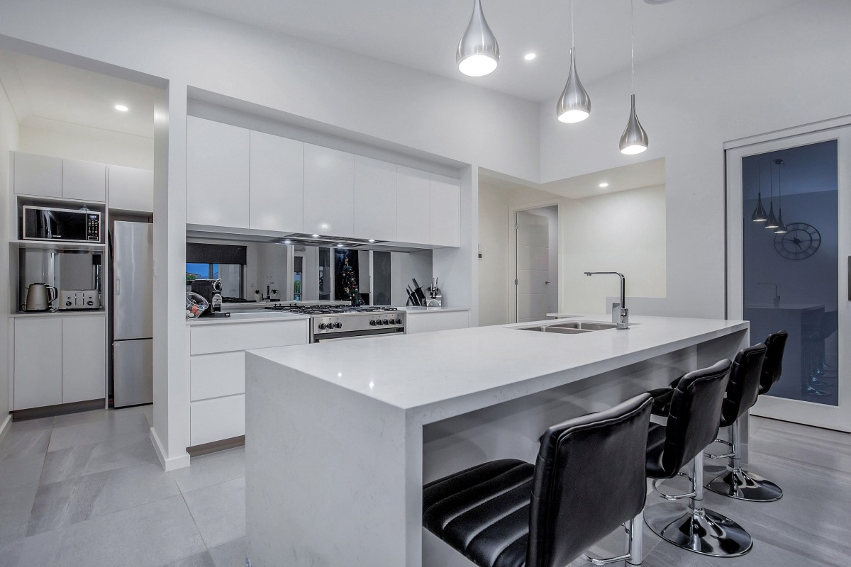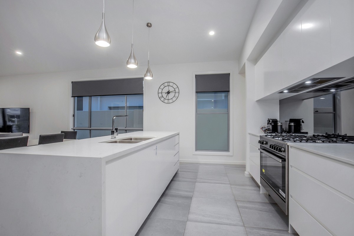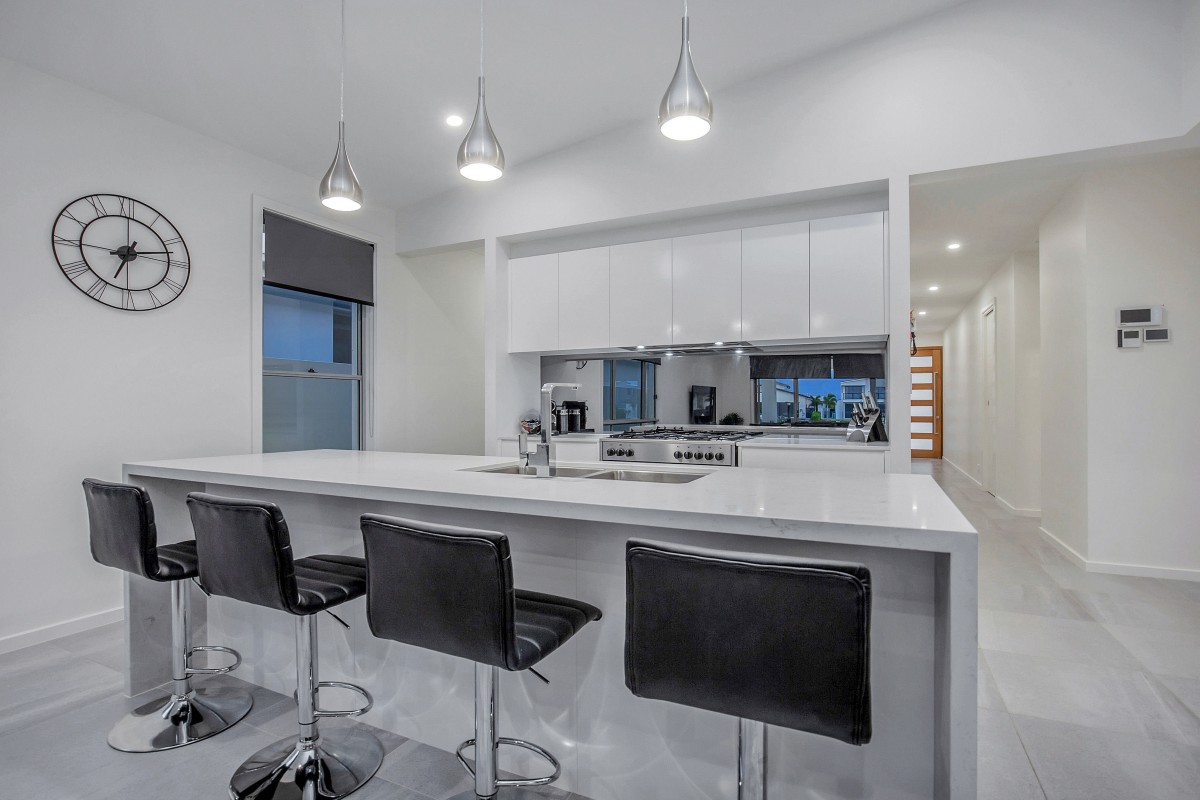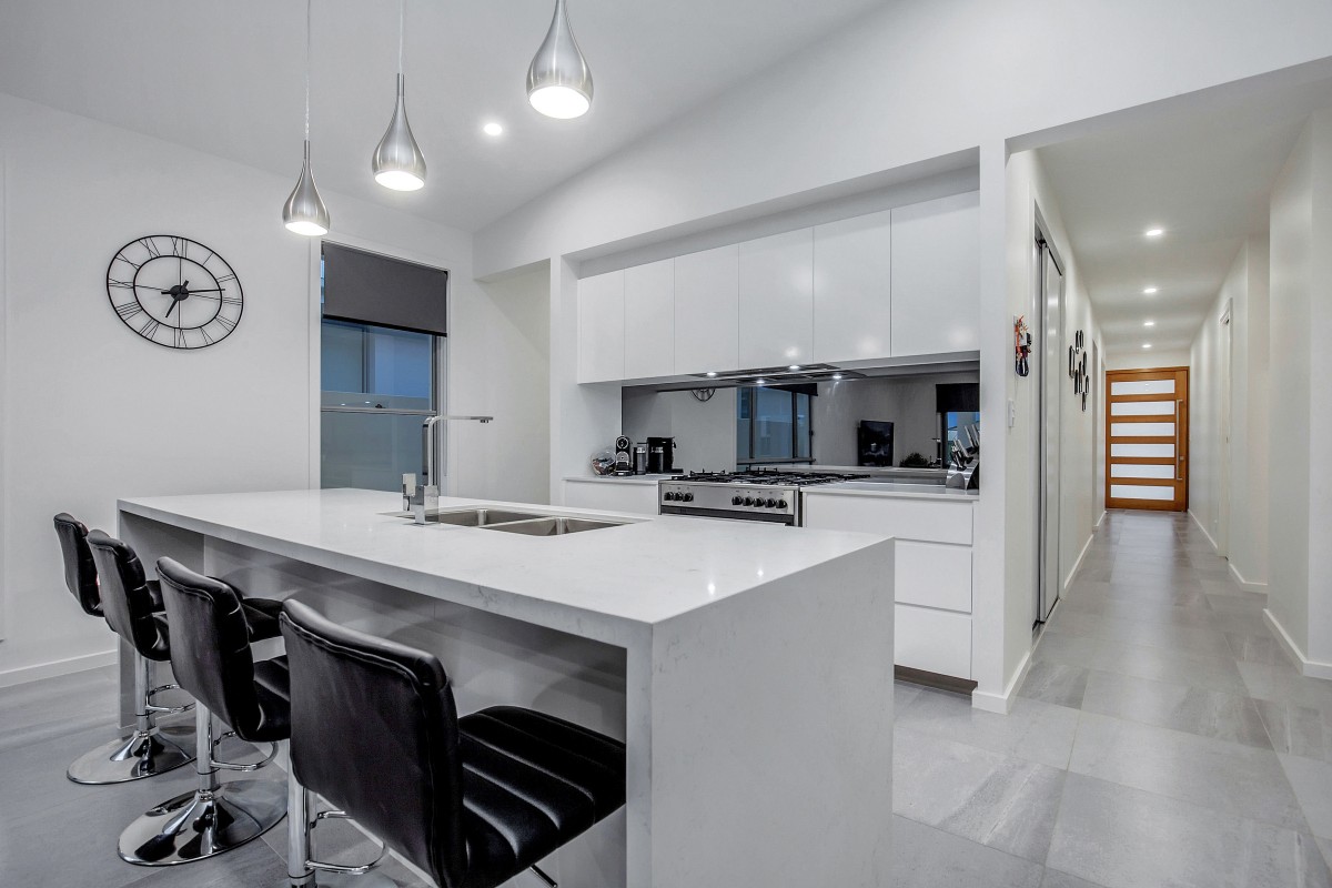 The beautifully designed kitchen is positioned perfectly as the hub of the home with a large island bench, soft close drawers, the convenience of a butlers pantry and of course furnished with high quality appliances including a large 900mm oven with gas cooktop.