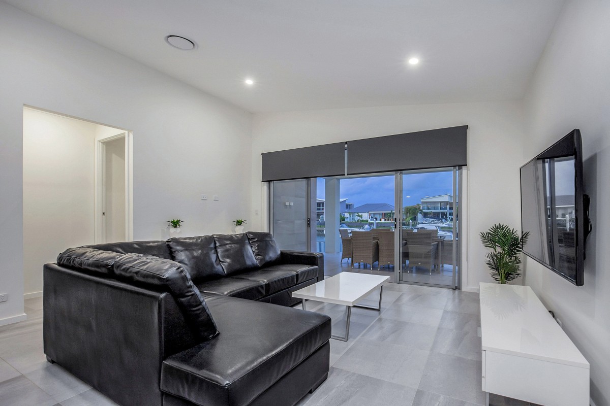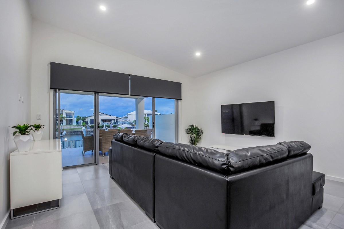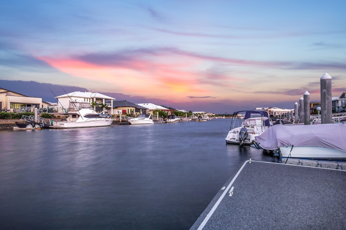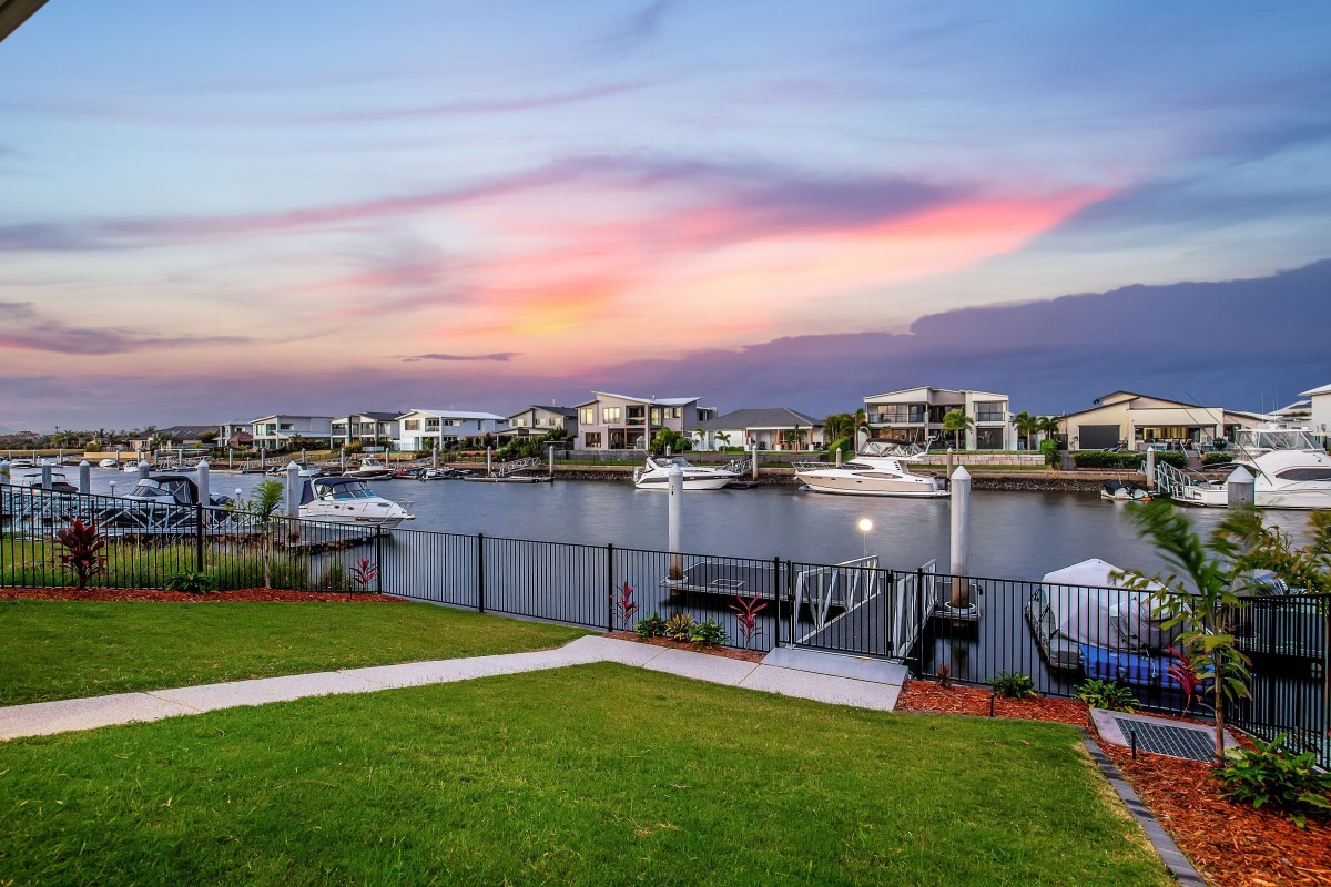 Calypso Bay also has regular security surveillance patrols, a gym (for residence use), beautiful walkways, walking distance to Harrigans Irish pub, a marina with 107 secure berths ranging from 10m - 30m as well - as Jet Ski docks, and full time gardeners that keep the estate looking world class. The waterways main entry to Calypso Bay is The "Grand Canal", which is 75 metres wide - with other canals having a width of 50 to 60 metres and an average depth of 2.5 metres at low tide.