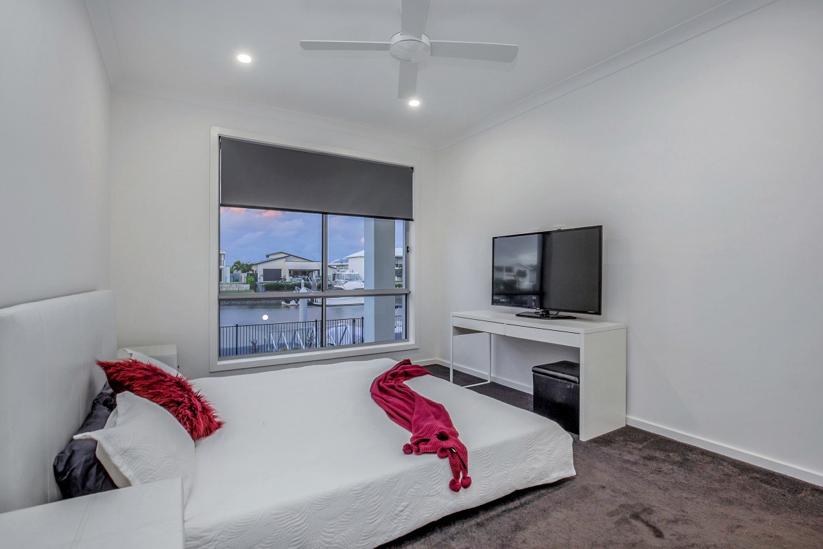 The main bedroom is at the back of the home providing exceptional views over the canal. The main bedroom also has its own private bathroom and huge walk in robe. The other three over sized bedrooms all have fans and built ins.