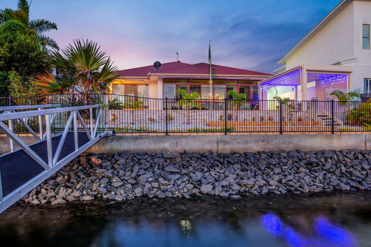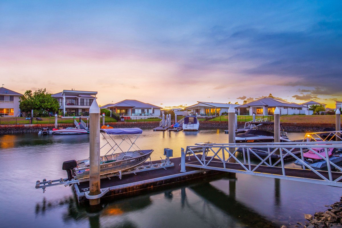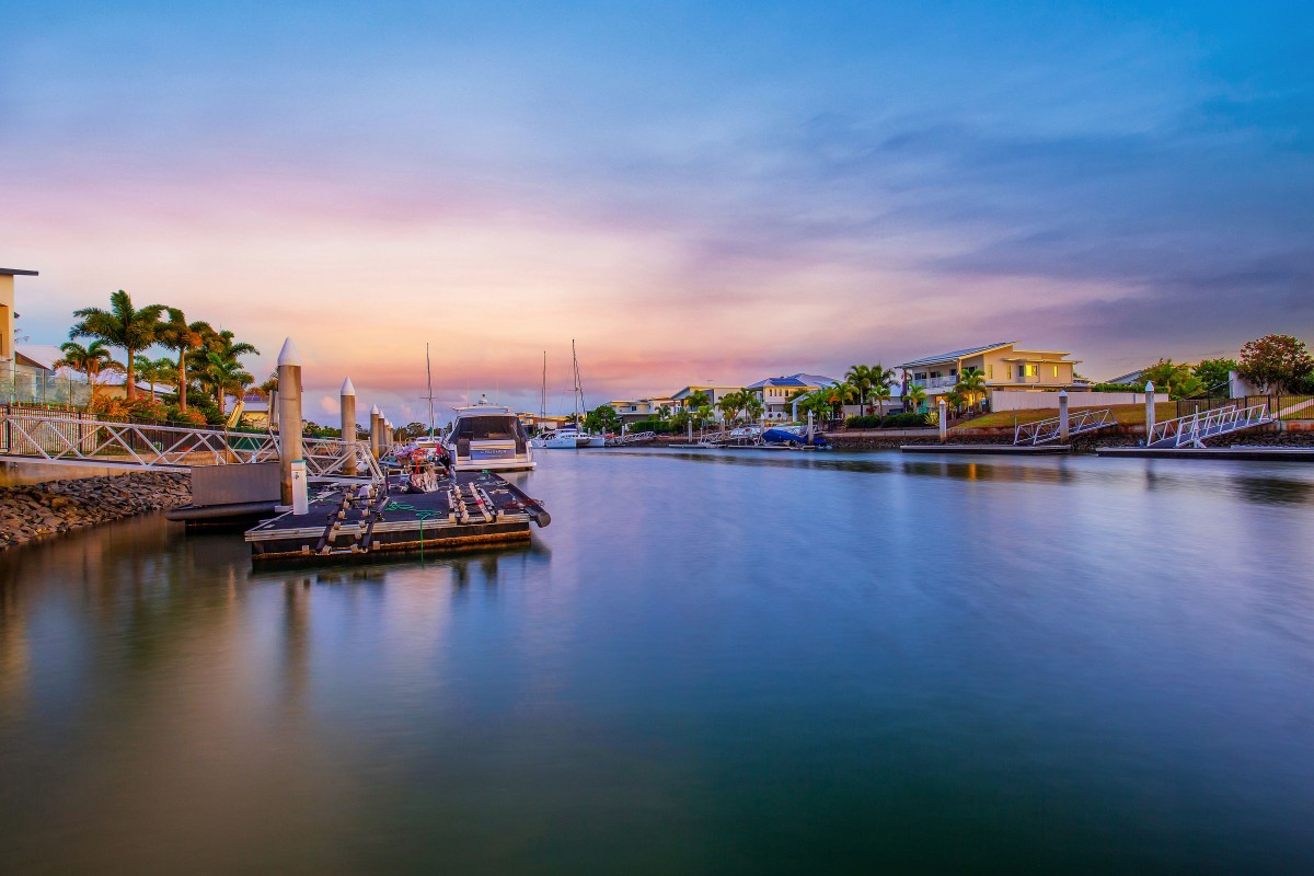 Calypso Bay also has regular security surveillance patrols,beautiful walkways, walking distance to Harrigans Irish pub, a marina with 107 secure berths ranging from 10m - 30m as well - as well as Jet Ski docks, and full time gardeners that keep the estate looking world class. The waterways main entry to Calypso Bay is The "Grand Canal", which is 75 metres wide - with other canals having a width of 50 to 60 metres and an average depth of 2.5 metres at low tide.