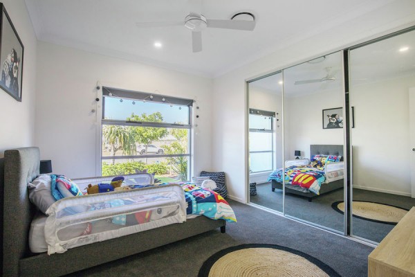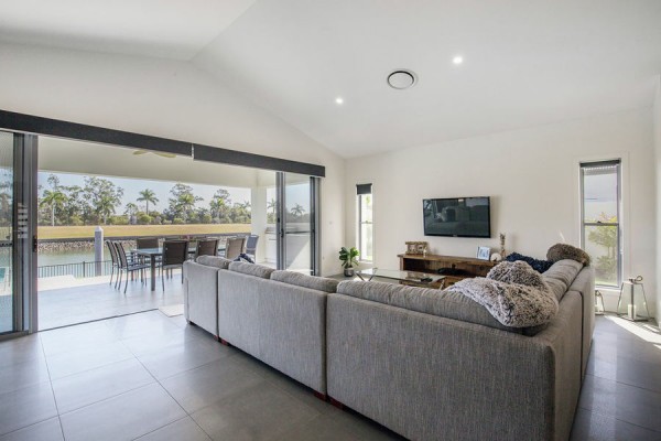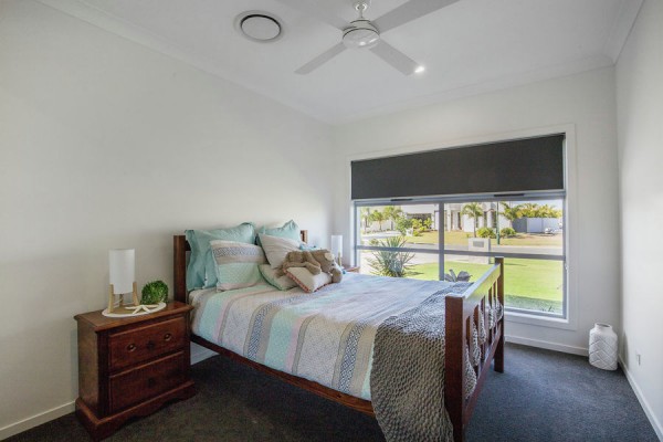 The main bedroom is at the back of the home with a wall of glass separating it from the pool and canal while providing exceptional views. The main bedroom also has its own private bathroom and huge walk in robe. The other three over sized bedrooms (all with fans, built ins, and one with a massive walk in robe) are positioned towards the front of the house with a separate living area and study for kids or guests.