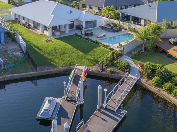 This modern single level home overlooks the canal and has its own private pontoon to allow you to enjoy waterfront living at its best with quick access to the Broadwater (without bridges).