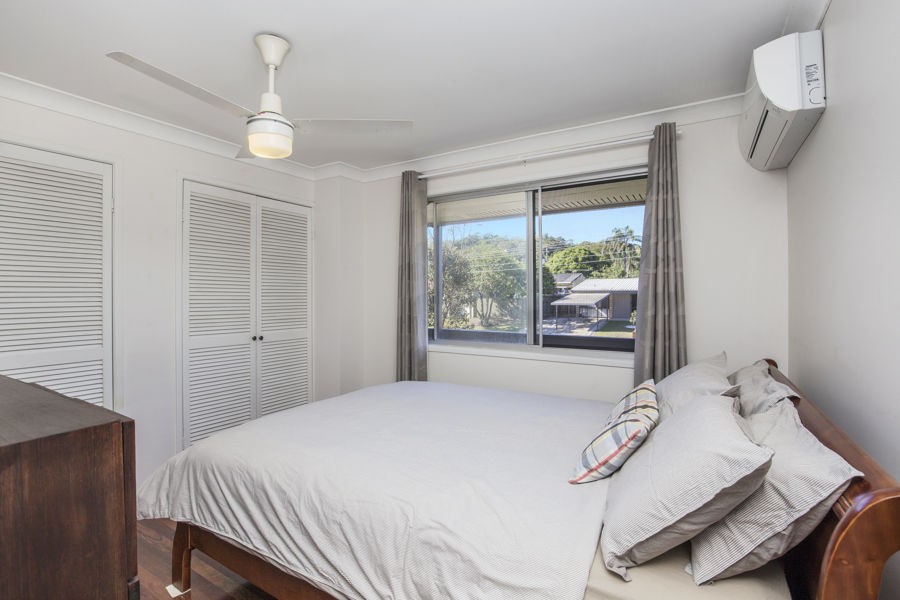 The upstairs living catches all the breezes which keep the house cool and comfortable along with the fans and air conditioning. There are three great sized bedrooms - all with their own air conditioning, a beautiful large front deck and lovely floorboards throughout.