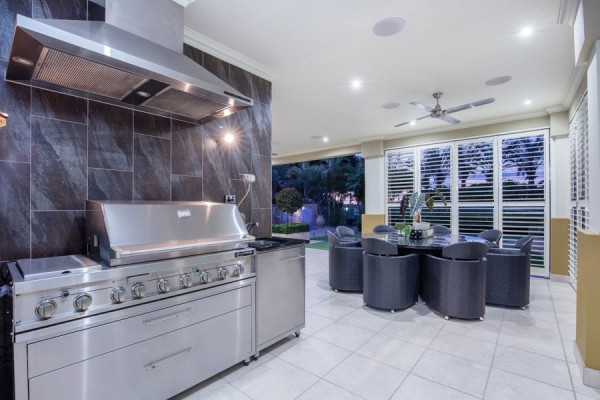 Brilliantly designed to capture light, with a warm and inviting floor plan that flows throughout and makes efficient use of every inch of the home. Formal and informal living areas are positioned perfectly and open up to the beautiful entertaining area that has its own built in outdoor kitchen with fully ducted exhaust, barbeque, sink, fridge and fabulous bi-fold shutters which give you the option to enclose or open the patio area.