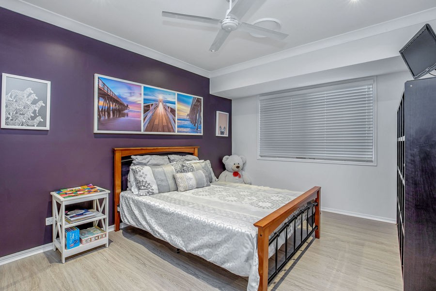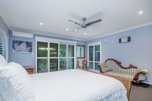 With four bedrooms in total, including an over sized master featuring huge separate walk in robe, plus additional sliding door robe, and beautiful ensuite with large shower, double vanity and floor to ceiling tiles....but what really transforms this bedroom into a destination is its own private outdoor retreat overlooking the lush gardens and pool area!