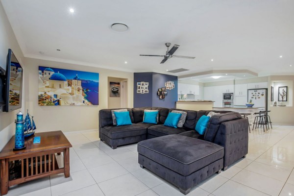 The layout of the house flows beautifully from front to back. There are three living areas with ample space, including a large family area off the kitchen, separate media room and a formal lounge area.