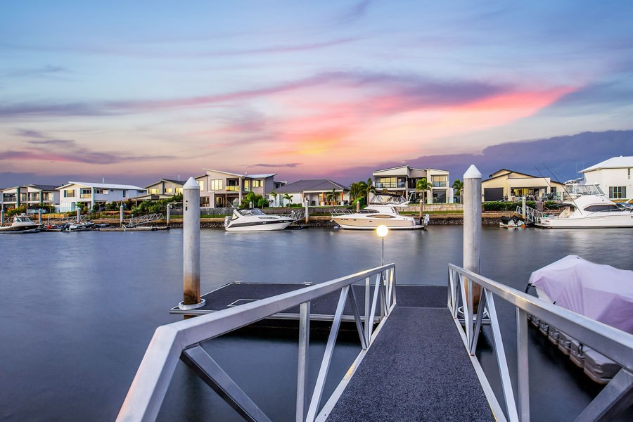 Calypso Bay also has regular security surveillance patrols, a gym (for residence use), beautiful walkways, walking distance to Harrigans Irish pub, a marina with 107 secure berths ranging from 10m - 30m as well - as Jet Ski docks, and full time gardeners that keep the estate looking world class. The waterways main entry to Calypso Bay is The "Grand Canal", which is 75 metres wide - with other canals having a width of 50 to 60 metres and an average depth of 2.5 metres at low tide.