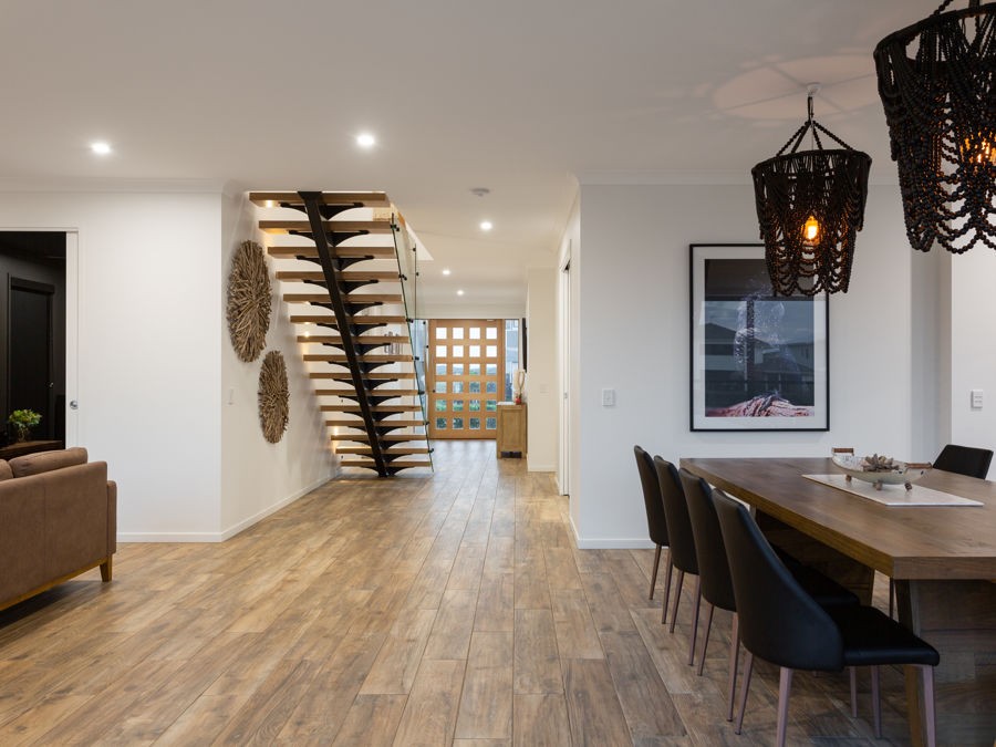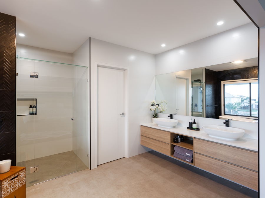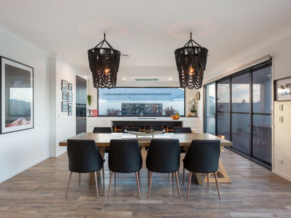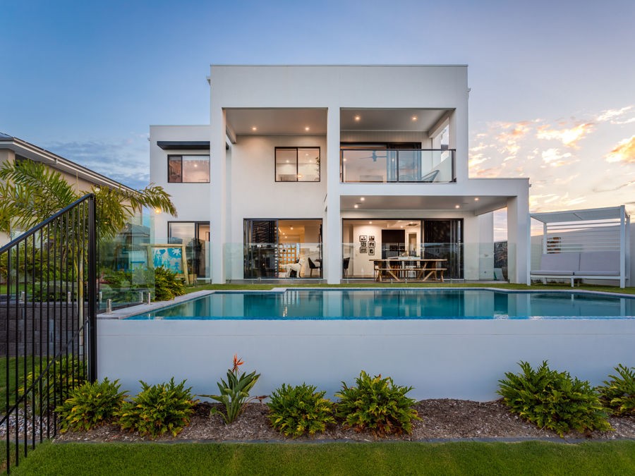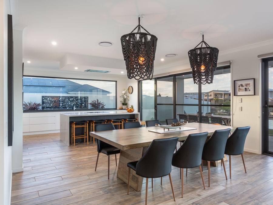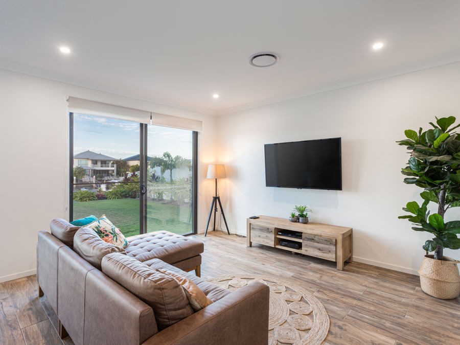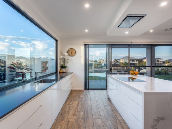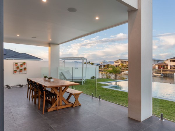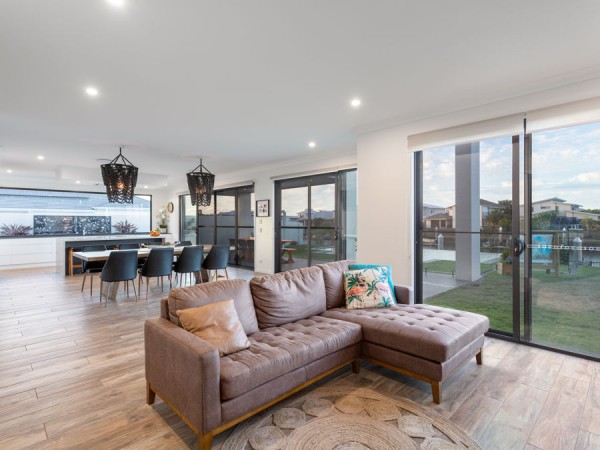 The ultimate open-plan design with spacious kitchen with butlers pantry, and living areas that seamlessly flow through to the huge covered alfresco and look across to the large saltwater pool and waterways, capturing the serenity perfectly.