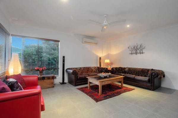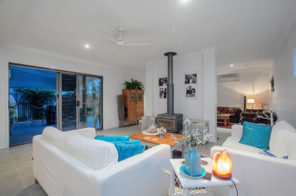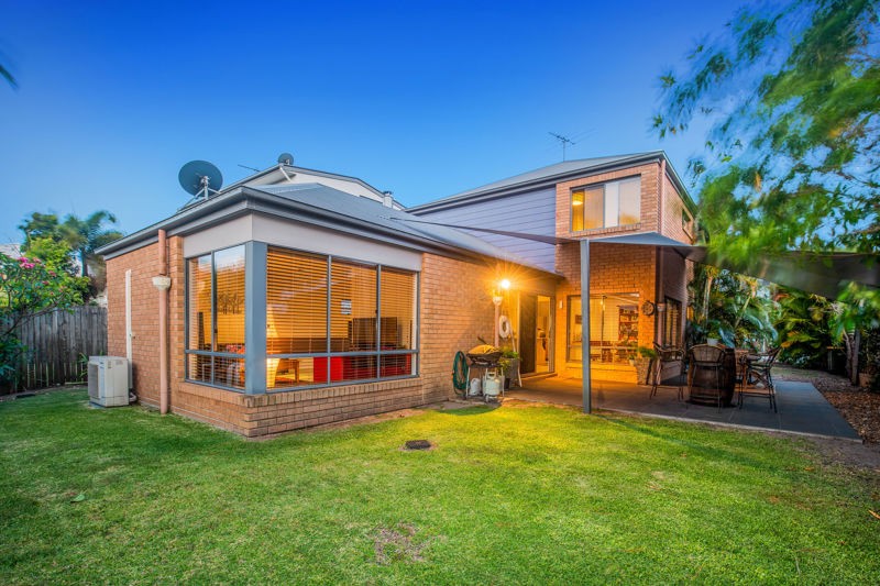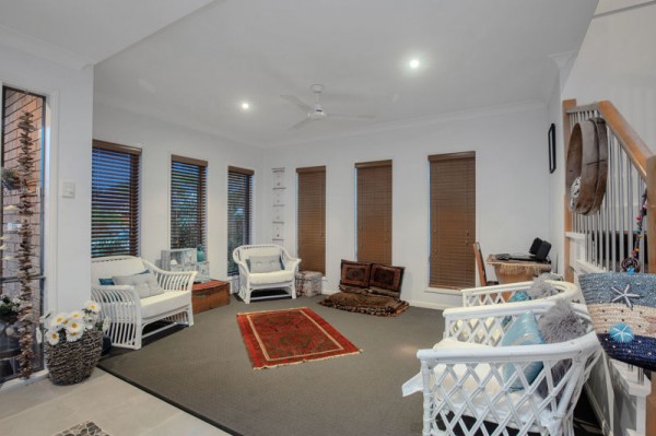 There are three great sized bedrooms upstairs, all with fans, and two with built-in robes, while the master has a walk-in robe, ensuite, air-conditioning, and a balcony with views towards Moreton Bay's magical waterways.