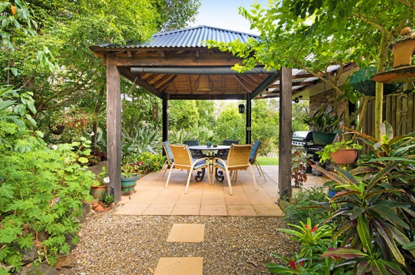 Entertaining is a delight with the open plan living area opening out onto beautiful landscaped gardens or entertain your guests under the magnificent Balinese style hut where you can enjoy outdoor dining or simply watch the wildlife.