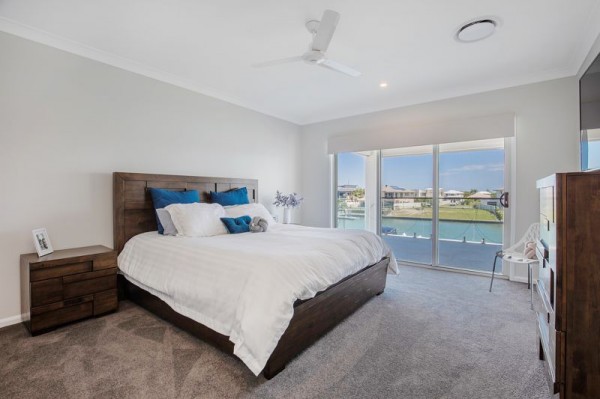 Master Bedroom Overlooks Water and Backyard with Direct Access to Balcony