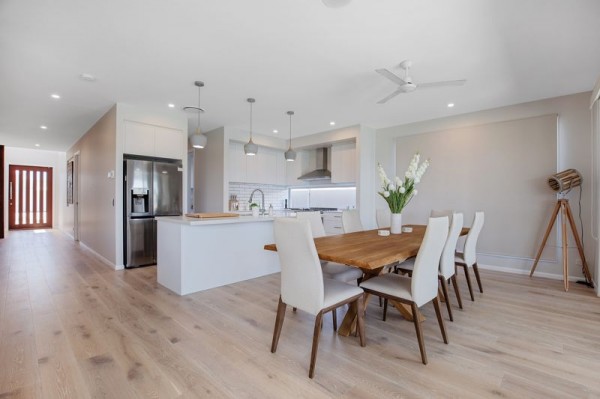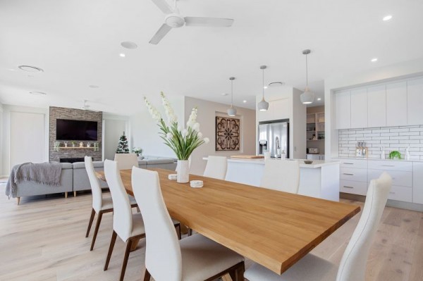 Open Plan Dining and Family Room Overlooking Alfresco Area, Pool and Canal