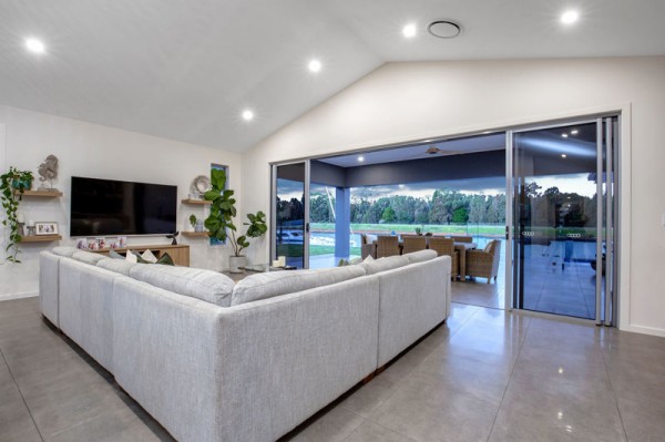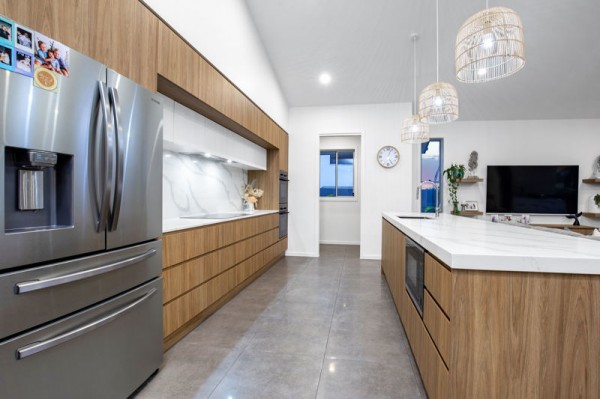 The beautifully designed kitchen is positioned perfectly as the hub of the home with a large island bench, soft close drawers, the convenience of a butlers pantry and of course furnished with high quality appliances.