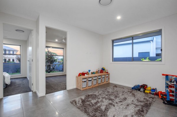 The main bedroom is at the back of the home with a wall of glass separating it from the pool and canal while providing exceptional views. The main bedroom also has its own private bathroom and huge walk in robe. The other three over sized bedrooms (all with fans, built ins, and one with a massive walk in robe) are positioned towards the front of the house with a separate living area and study for kids or guests.