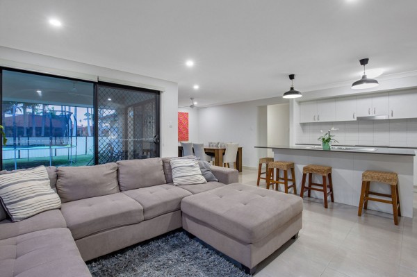 Perfectly situated in a quiet family area with views across the parkland, this modern family home has been designed perfectly on a large 855m2 block - plenty of room for a pool! The interior open-plan configuration flows flawlessly throughout the house.