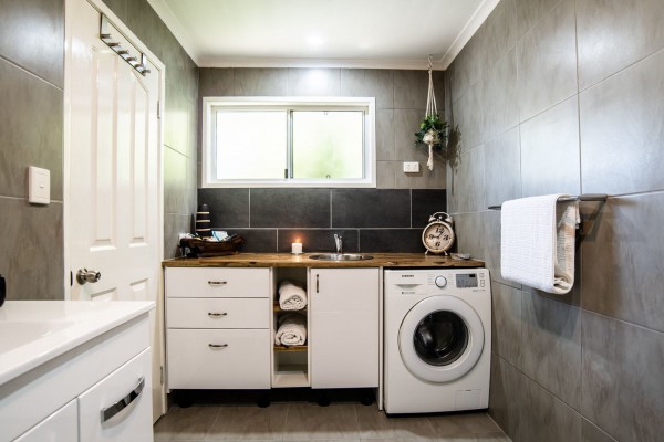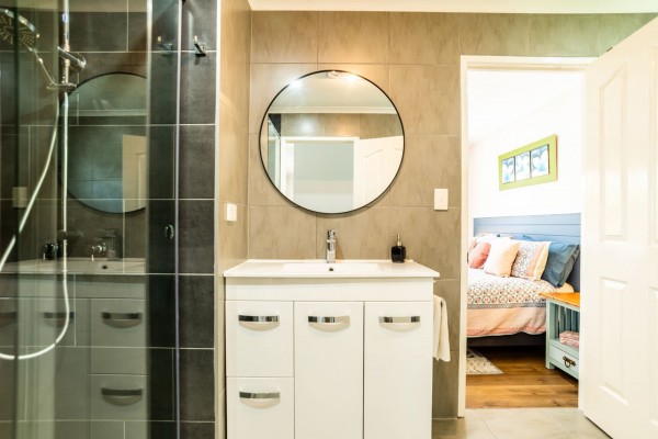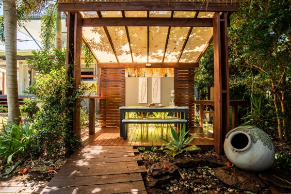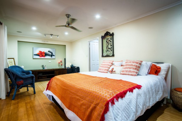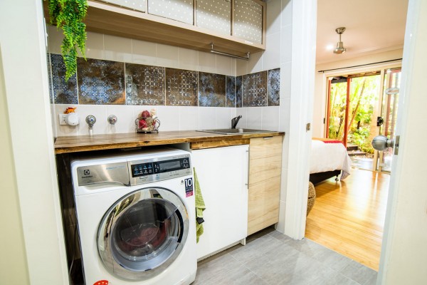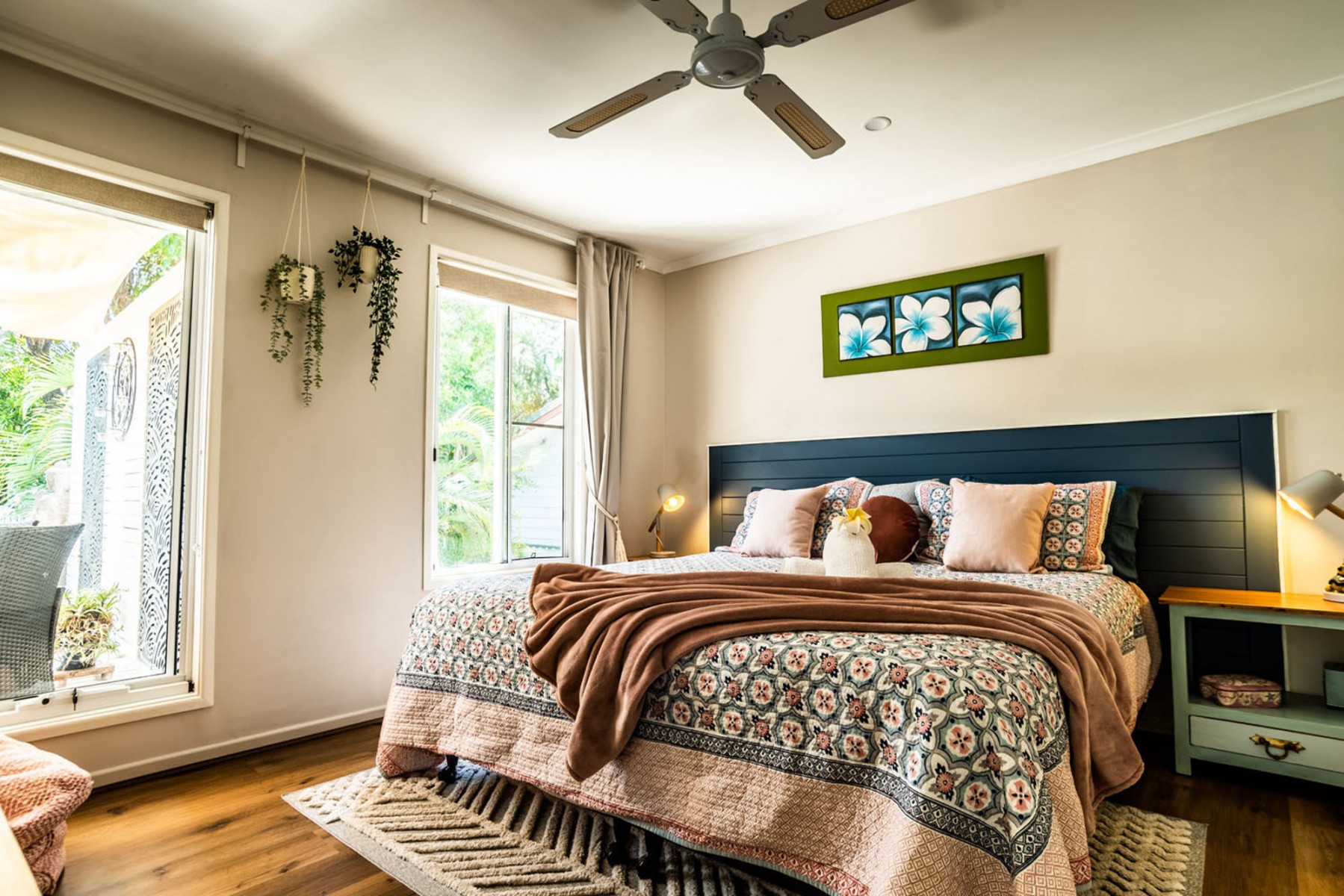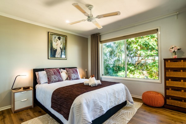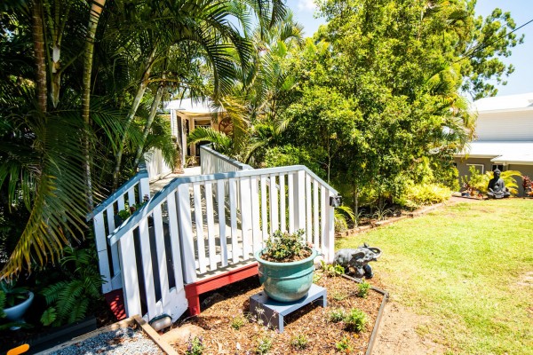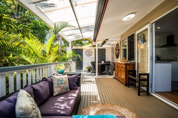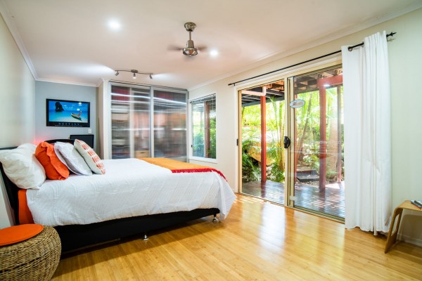 - Two bedrooms, one with a private deck that has a beautiful rain forest feel with lush gardens and a secluded area - perfect for a spa! The second bedroom overlooks the water and backyard