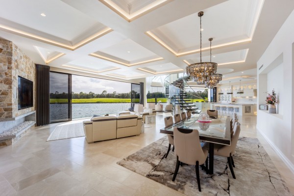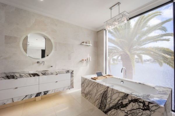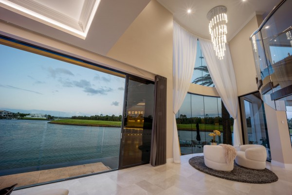 Screaming sophistication and elegance with gorgeous marble flooring throughout - meticulous detail from floor to ceilings. Living spaces feature 3.3m high coffered ceilings downstairs, glass that spans the full height of the residence, and integrated indoor/outdoor living making the most of one of the best views in the Calypso Bay estate.