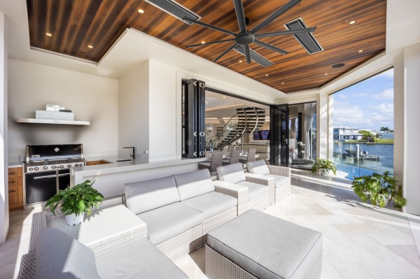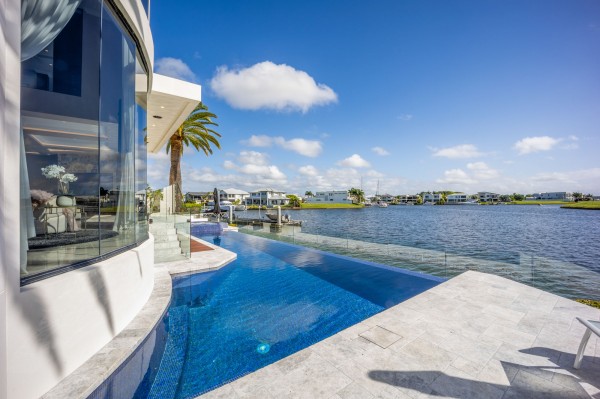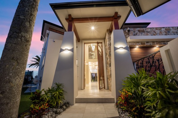 Architecturally designed, this stunning waterfront home provides an enviable and luxurious lifestyle against uninterrupted water views down the main canal and through to Moreton Bay.