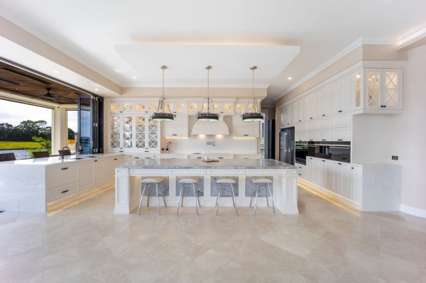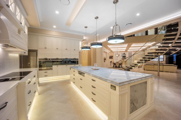 Designed with a high-end French Provincial style kitchen with heated flooring perfect for both effortless entertaining as well as everyday cooking. State-of-the-art appliances, walk-in pantry and an oversized island breakfast bar make this kitchen an entertainers dream.
