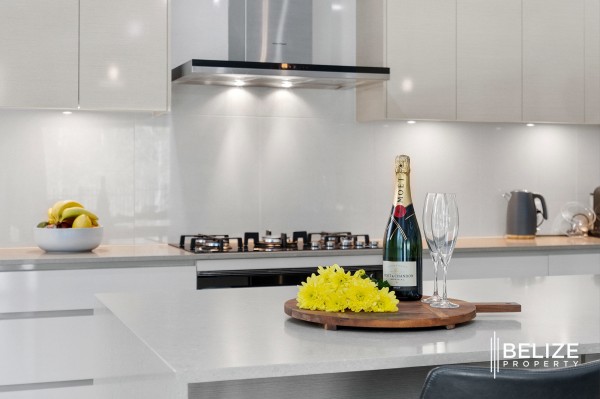 * Beautifully appointed kitchen with premium 900ml Fisher & Paykel oven, gas on glass hot