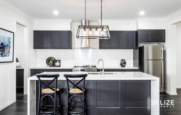 The kitchen offers a stone island benchtop with abundance of cupboard space including a spacious butler's pantry and fitted with high end quality appliances including a 5 burner gas cooktop. The open plan kitchen, living and dining area flows seamlessly out to the generously sized alfresco area which is fitted with a ceiling fan.