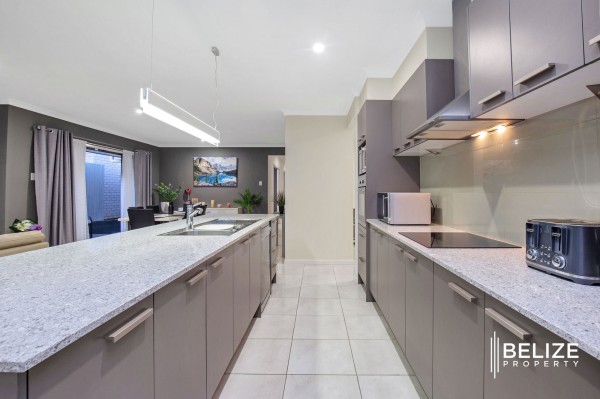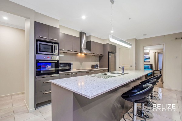 - Beautiful modern kitchen with modern appliances, oversized walk-in pantry and stone benchtops