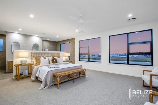 The master suite is a true sanctuary, offering generous space, a spa-like ensuite bathroom, and breathtaking views of the waterfront. Each of the additional bedrooms provides comfort and privacy, making it an ideal retreat for family and guests.