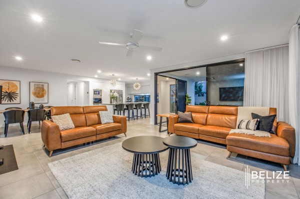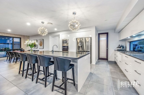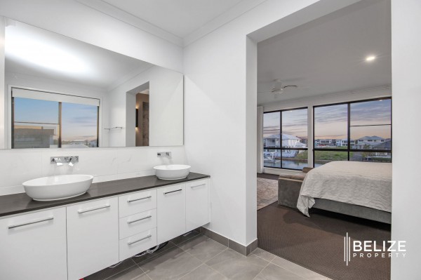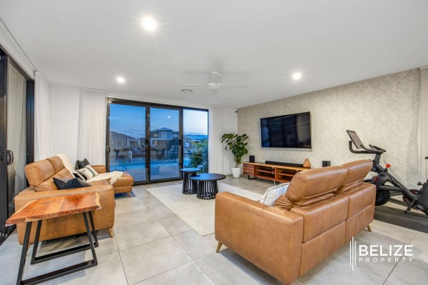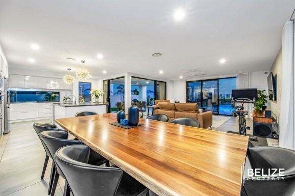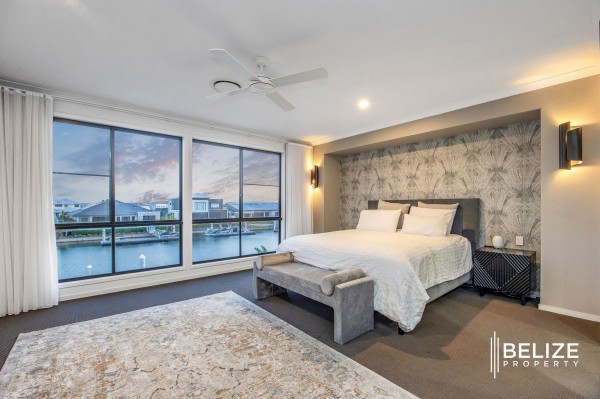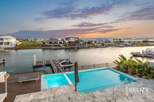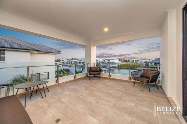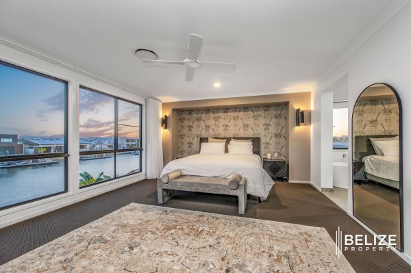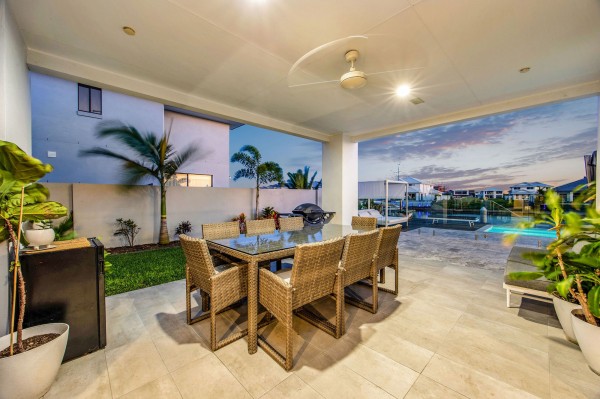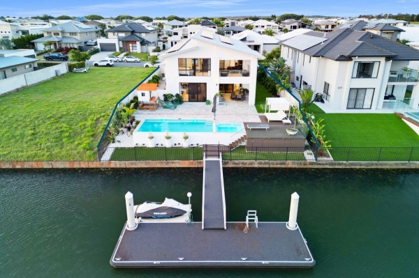 Downstairs, there is a massive open-plan living area with magical water views across the pool to the wide canal. Sliding doors open to bring indoor living outdoors, where you can sit back and relax in the covered alfresco while watching the kids play in the pool or entertaining with friends and family.