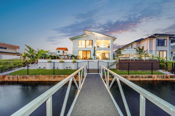 Luxury family waterfront lifestyle awaits in this contemporary-styled home. This meticulously designed, two-storey home is surrounded by low-maintenance gardens on a 722m2 block.