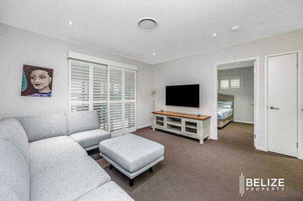 Top-Notch Finishes: Beautiful white floor tiles, plantation shutters throughout, ducted and zoned air conditioning, quality ceiling fans, and a glass-paneled staircase enhance the home's luxurious feel.