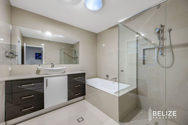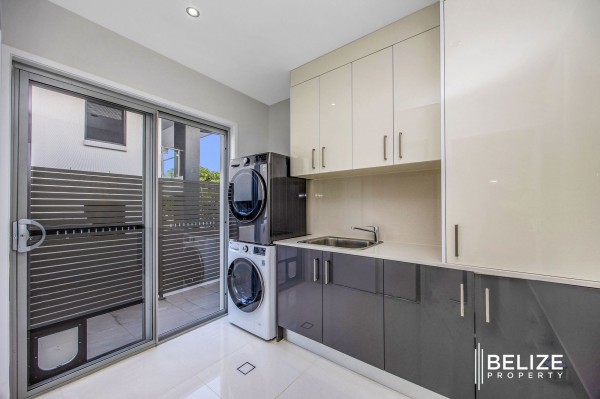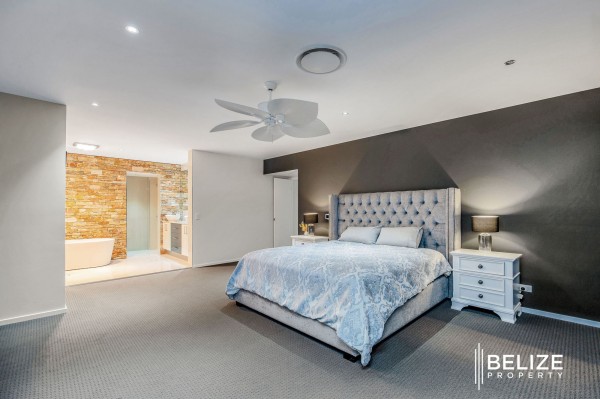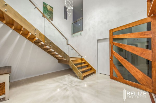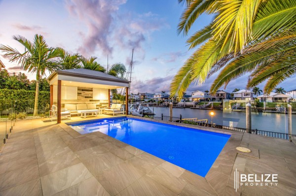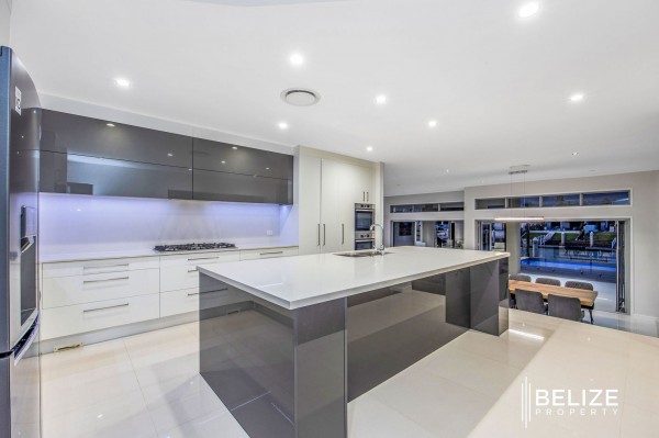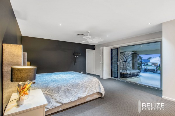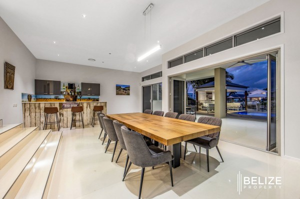 Positioned at the end of a quiet cul-de-sac, this magnificent Calypso Bay home exudes luxury and impeccable craftsmanship. From the moment you enter the secure front gate, you'll be captivated by the home's grand presence and flawless design. The 'waterfall' light in the foyer sets the tone for what lies ahead-a home that perfectly balances elegance with modern living.