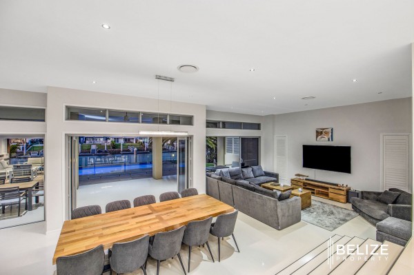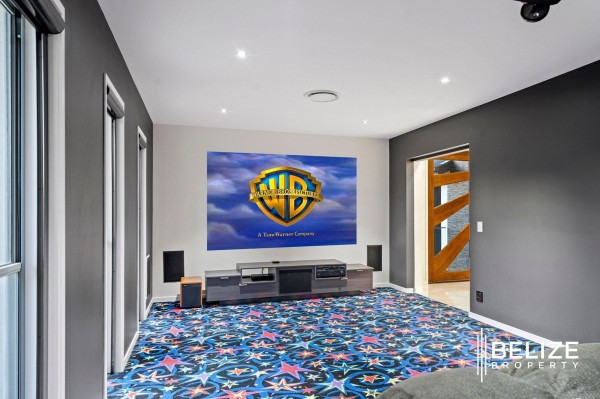 Multiple Living Areas: Relax in the casual dining and family area with high ceilings and feature lighting, or entertain in the formal dining room with water views. There's also a built-in bar and an impressive theatre room with electronic blinds-ideal for movie nights.