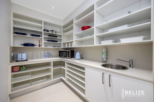 Chef's Kitchen: The beautifully designed kitchen showcases stone benchtops, ample cupboard space, gas cooking, and a hidden butler's pantry with its own bench and sink.