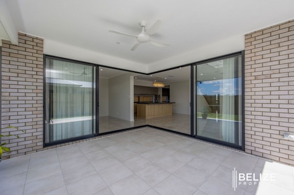 - Large open-plan living and dining areas with stacker doors leading to the outdoor patio