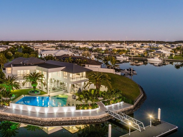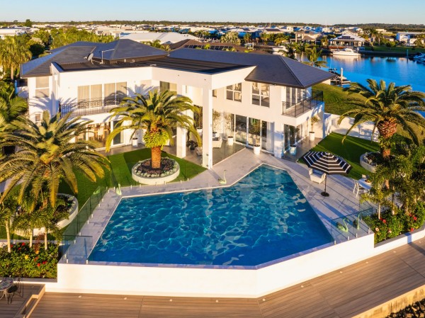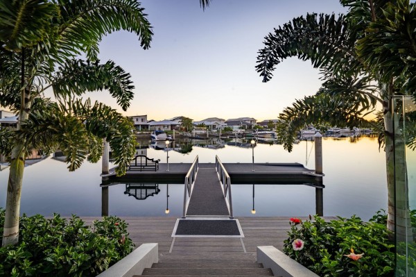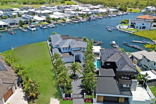 Offered fully furnished, this exquisite architect-designed residence on one of the largest blocks in Calypso Bay is the epitome of luxury, privacy, and refined living. Set on a 1,346m² waterfront allotment with 36m frontage, this high-end home features premium finishes, intelligent design, and a seamless indoor-outdoor lifestyle with direct boating access to the Broadwater.
