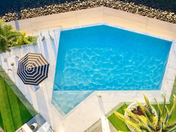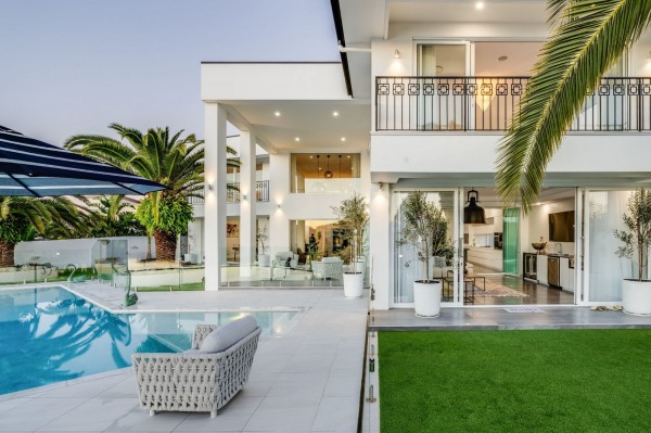 - 120,000L solar-heated in-ground pool with water feature and artificial lawn