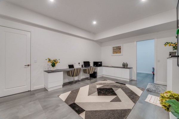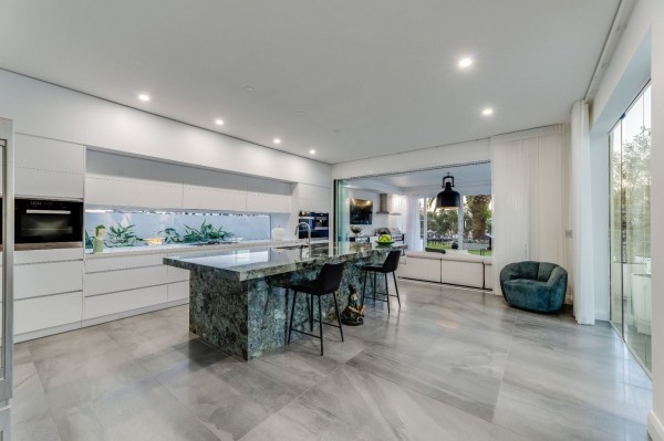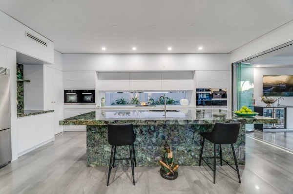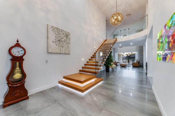 - Grand entry foyer: 3.6m wide, 6m high ceilings, back-lit art wall