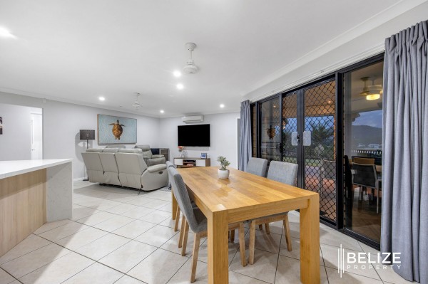 - Open plan dining and family lounge with air conditioning and ceiling fans