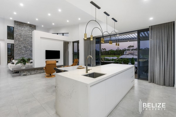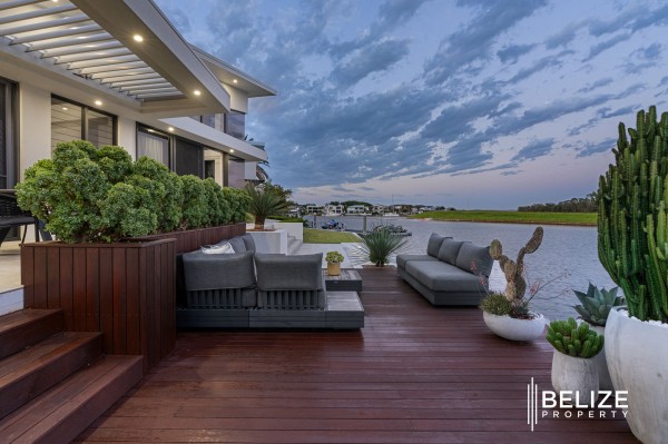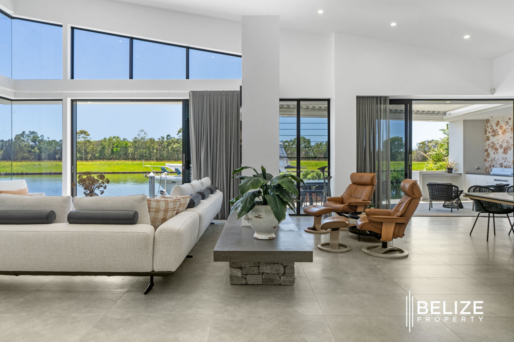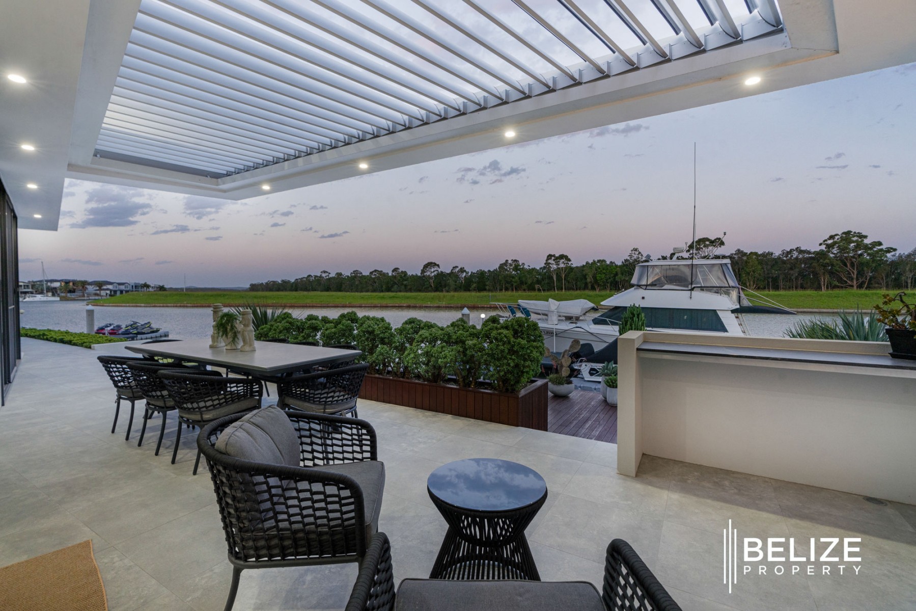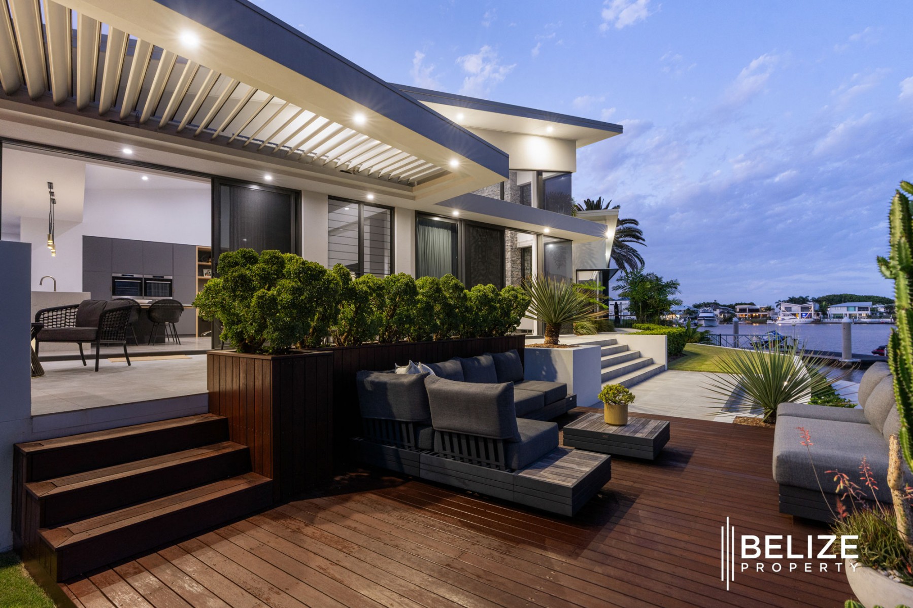 A luxury single-level waterfront masterpiece in exclusive Calypso Bay, featuring stunning architectural design, soaring ceilings, seamless indoor-outdoor living, and a private pontoon. Enjoy a gourmet chef's kitchen with butler's pantry, designer stone bar, multiple living areas, and a grand master suite with water views and a resort-style ensuite. Complete with double garage plus caravan space, workshop, and expansive alfresco entertaining overlooking the canal. A rare blend of elegance, lifestyle and direct boating access.
