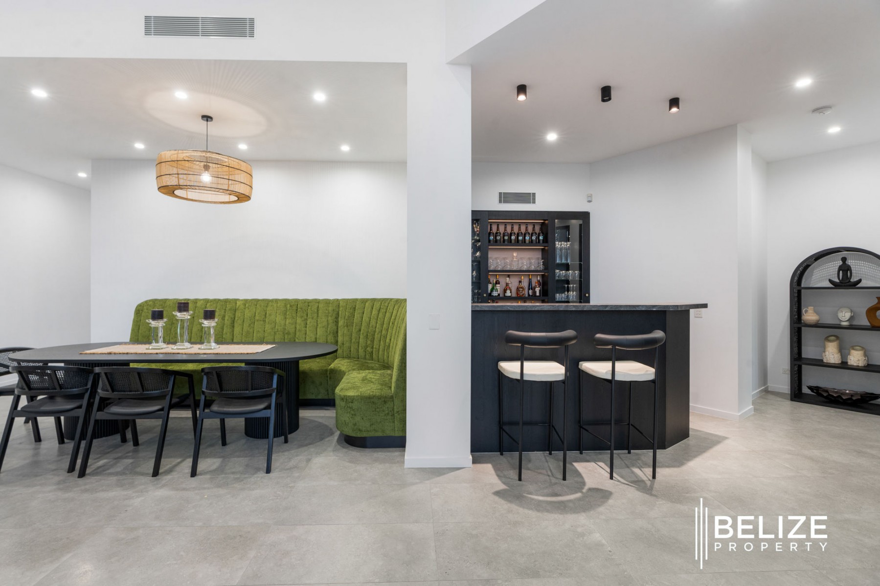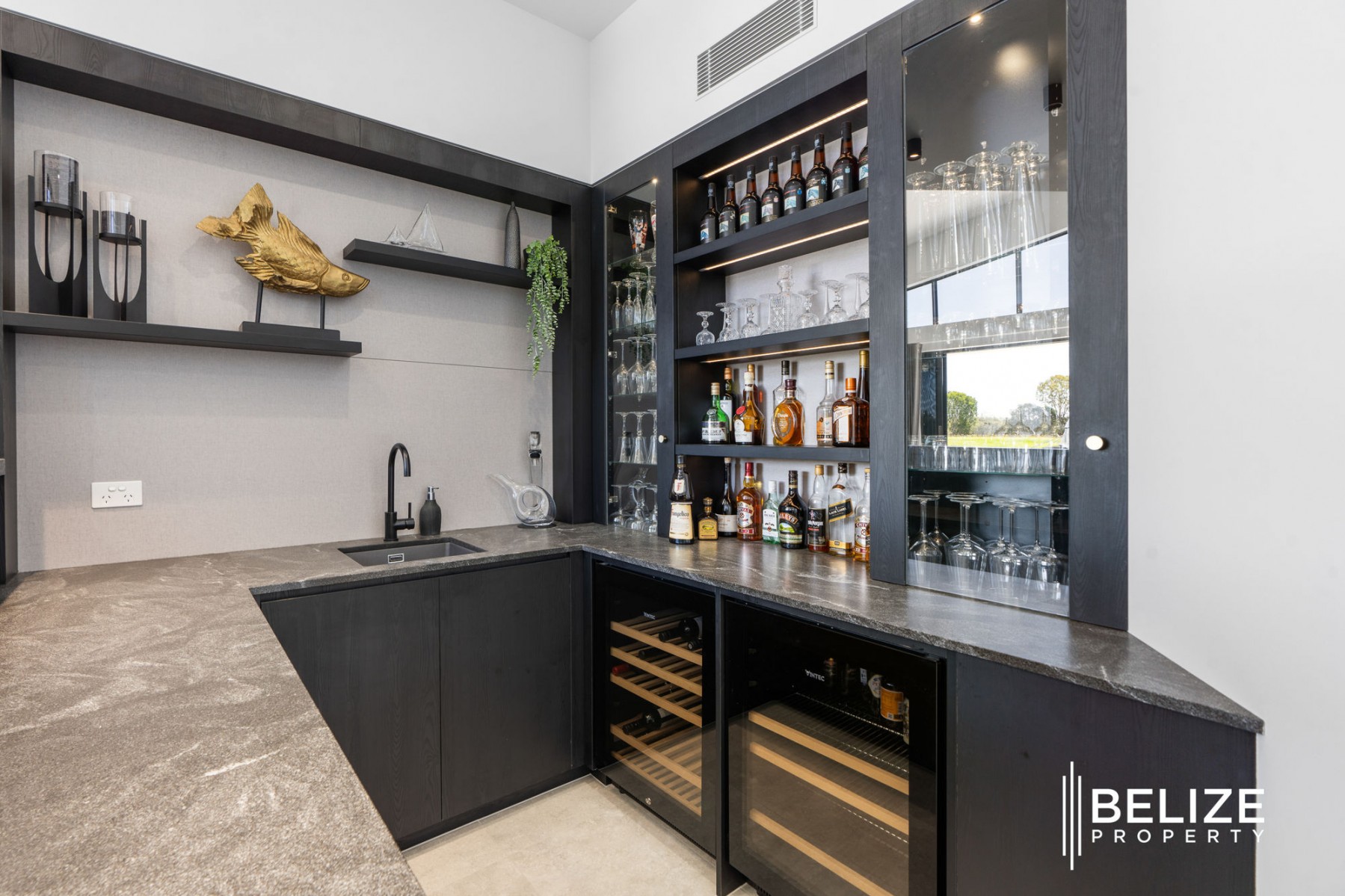 - Custom designer stone bar with dual wine fridges & display cabinetry