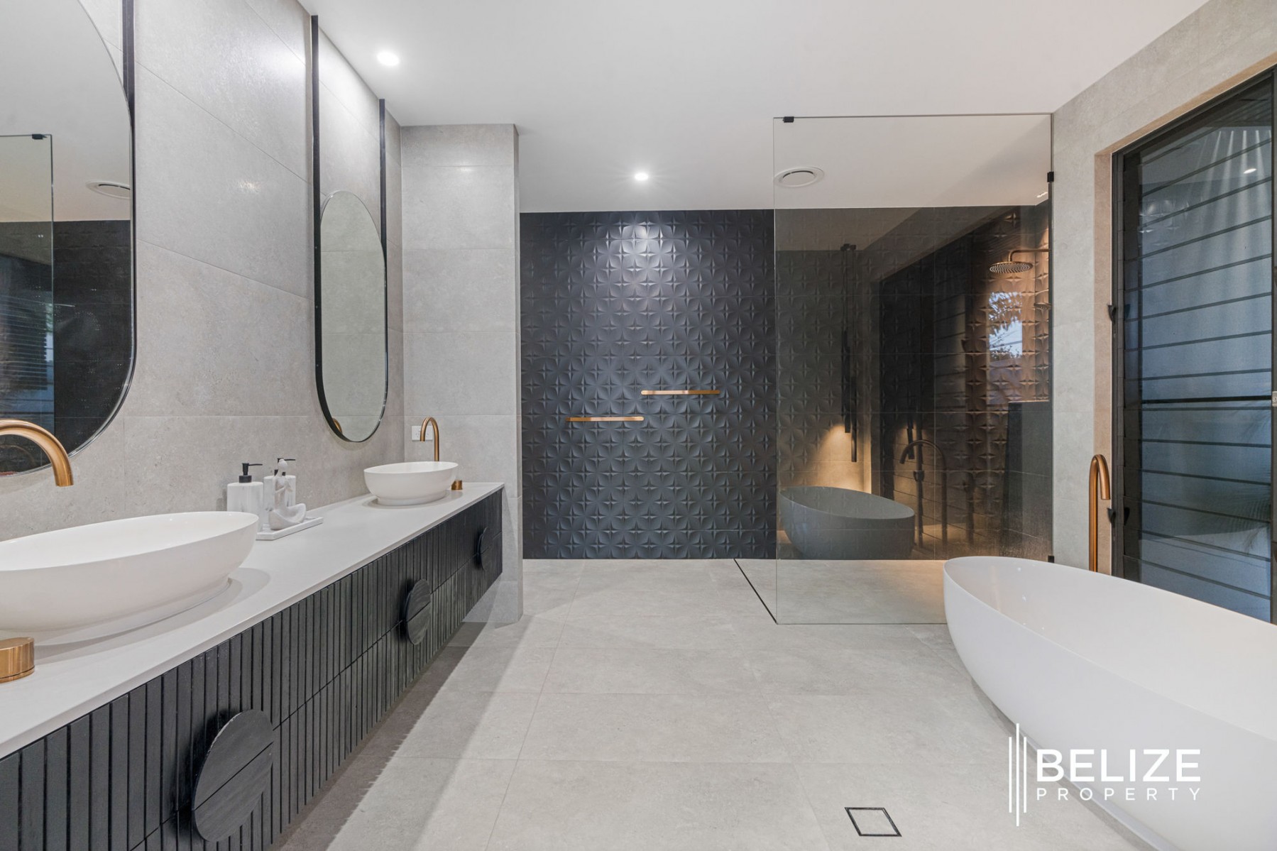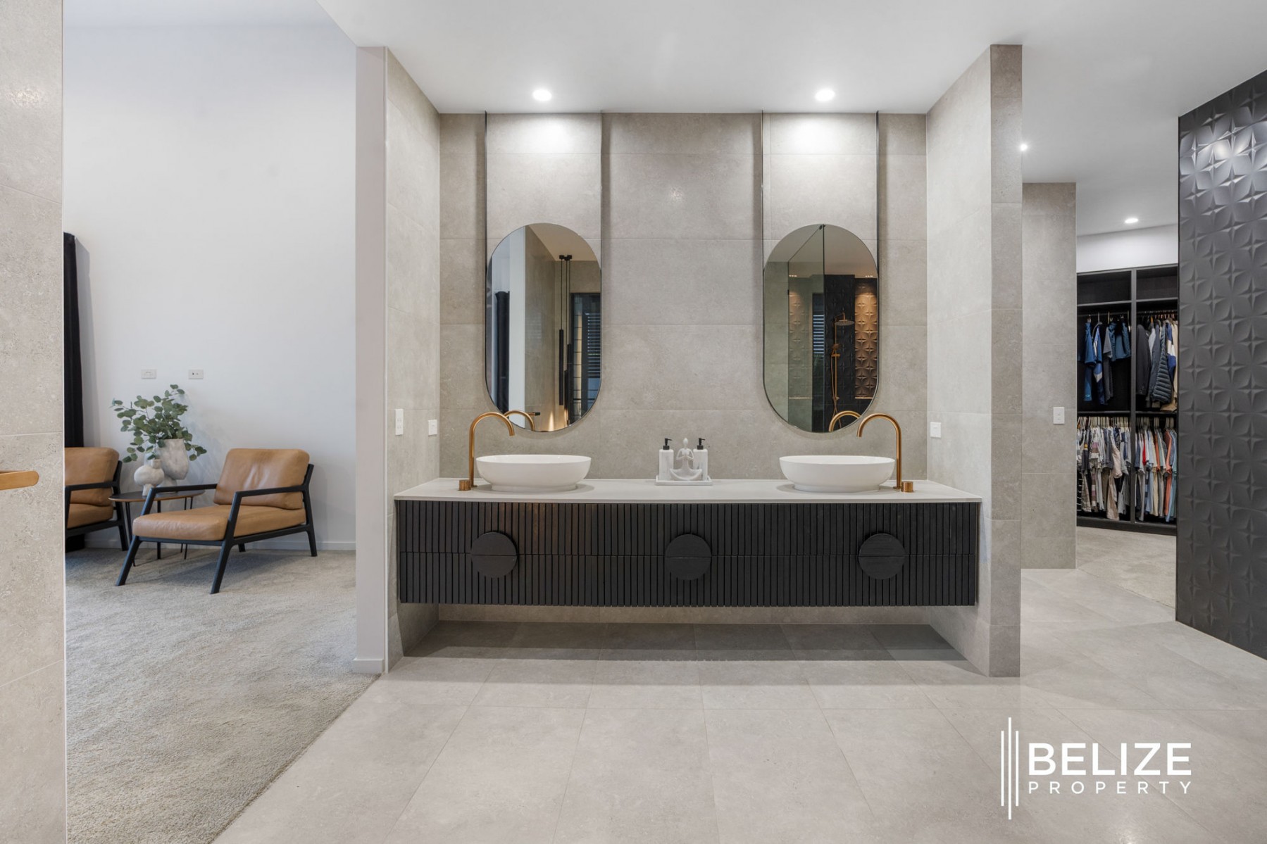 - Resort-style ensuite featuring freestanding bath, twin vanities & large shower