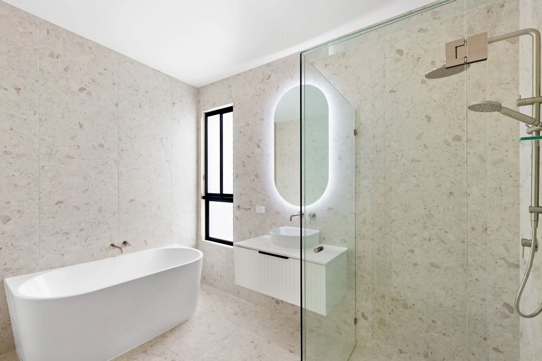 - Designer bathrooms with heated and backlit mirrors