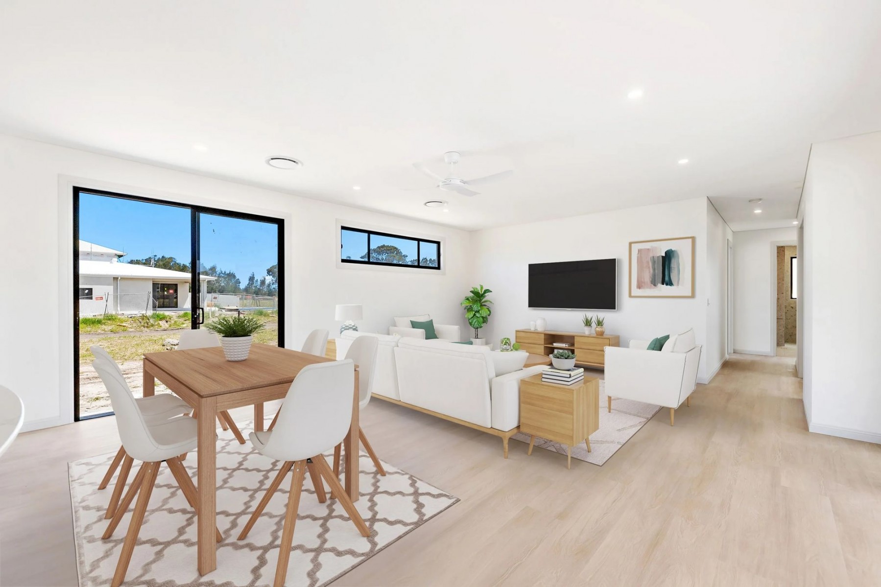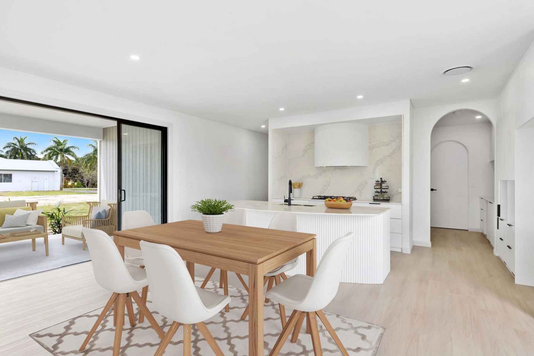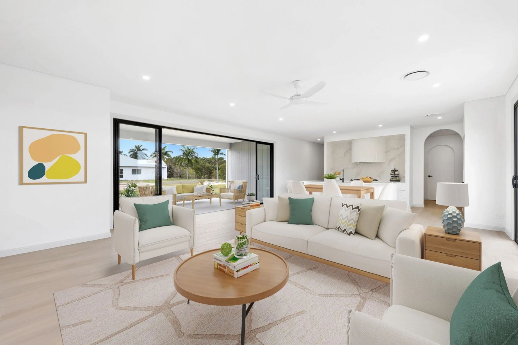 - Open plan living and dining connecting to the outdoor alfresco